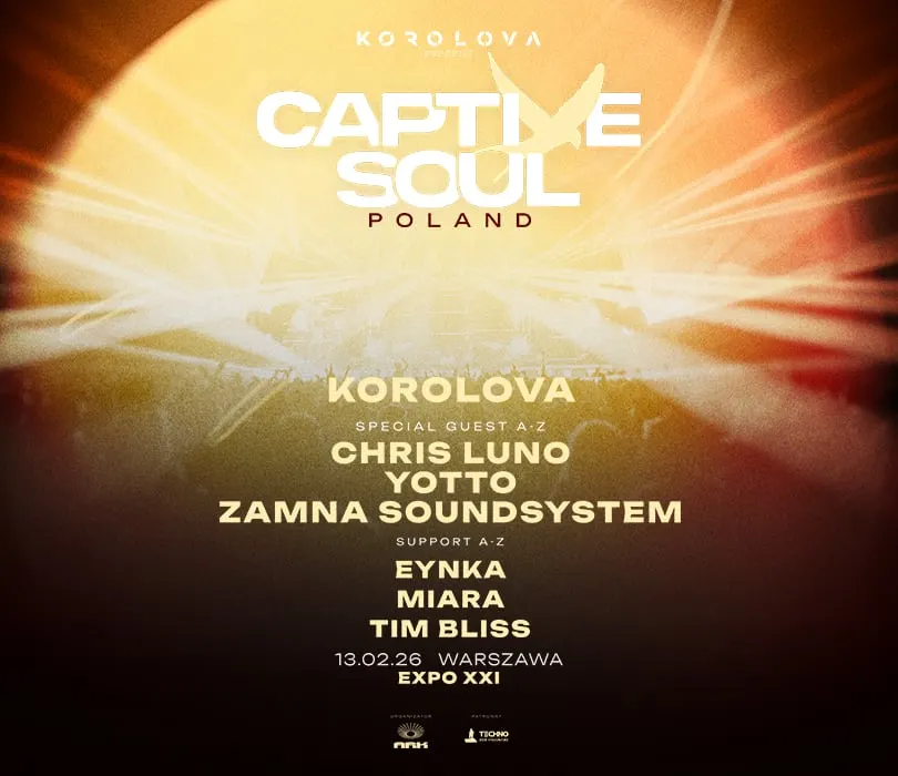 Captive Soul by Korolova – autorski koncept jednej z najważniejszych postaci sceny melodic techno nadchodzi do Polski! Dwie halowe noce pełne hipnotycznego brzmienia, emocji i futurystycznej estetyki, z line-upem złożonym z nazwisk, które realnie kształtują obecną scenę elektroniczną - Zamna Soundsystem, Yotto, Chris Luno, Eynka, Miara i Tim Bliss. Dołącz do nas w Warszawie i we Wrocławiu, gdzie przestrzeń zamieni się w całonocne, pełnowymiarowe doświadczenie.