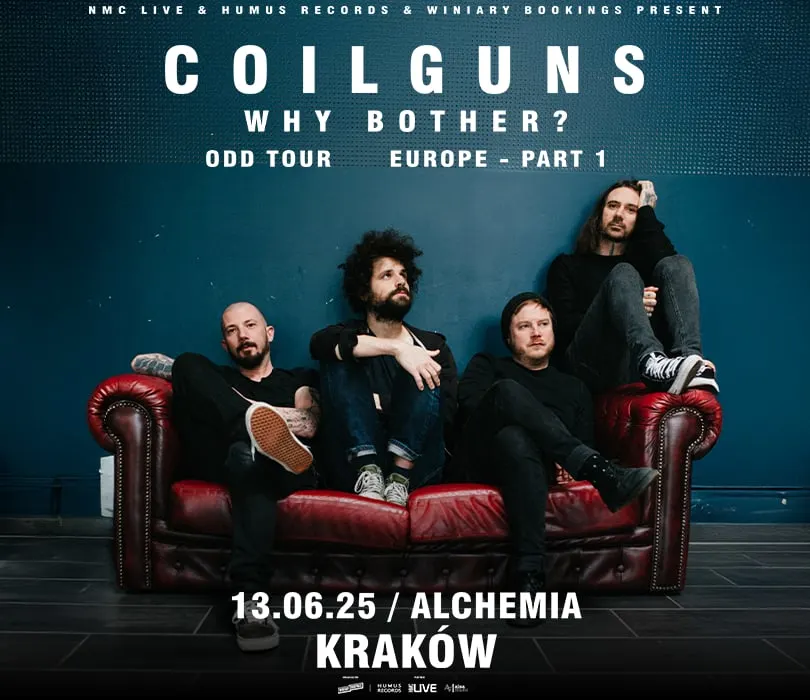 Noiserockowa grupa Coilguns wystąpi w czerwcu na 3 headlinerskich koncertach w Polsce - 12 czerwca we wrocławskim Liverpoolu, dzień później w krakowskie Alchemii oraz 14 czerwca w poznańskim klubie Pod Minogą. Szwajcarom towarzyszyć będzie trójmiejska ekipa Why Bother? Coilguns powstało w 2011 roku z inicjatywy muzyków związanych wcześniej z The Ocean, którzy za sprawą nowego projektu chcieli wykonywać muzykę prostszą i bardziej energiczną. W ich twórczości usłyszymy wpływy post hardcore’u, noise rocka, czy nawet math rocka, a z kawałków wylewają się chaotyczne, lecz miejscami przebojowe riffy, które w połączeniu z polirytmicznymi strukturami perkusyjnymi składają się na moc, która na żywo działa ze zdwojoną siłą. W zeszłym roku wydali świetny album “Odd Love”, który zdążyli już promować na takich festiwalach jak Soulcrusher czy belgijskim Desertfeście. W tym roku też nie będą próżnować - swój najnowszy krążek odegrają w całości na holenderskim Roadburn, w sierpniu wystąpią na ArcTanGent a gdzieś pomiędzy zawitają do naszego kraju. Na 3 headlinerskich koncertach szwajcarska grupa wystąpi w towarzystwie trójmiejskiego Why Bother?. Projekt założony przez Bartosza Boro Borowskiego (Lonker See, B3-33), Macieja Szkudlarka (Lastryko, Logophonic) i Łukasza Kumańskiego (Me and That Man, Mulk), do których po pewnym czasie dołączył wokalista Rafał Jurewicz, gra muzykę na pograniczu noise rocka, punka i psychodeli. W 2022 roku ukazał się ich drugi album, zatytułowany po prostu “II”, a 2 lata temu światło dzienne ujrzał ich wspólny materiał z Dule Tree, “Musisz Umrzeć”. COILGUNS Support: Why Bother? 📅12.06.2025 / Wrocław, Liverpool 📅13.06.2025 / Kraków, Alchemia 📅14.06.2025 / Poznań, Pod Minogą 🎟BILETY: https://bit.ly/COILGUNS_WRO https://bit.ly/COILGUNS_KRK https://bit.ly/COILGUNS_PZŃ Punkty sprzedaży: www.winiarybookings.pl, Going, Empik Bilety Szanowni Państwo. Prosimy o kupowanie biletów wyłącznie w autoryzowanych punktach sprzedaży. Poprzez kupno wejściówek od osób trzecich możecie zostać Państwo oszukani. Wstęp na koncert 13+ za pisemną zgodą rodzica. Poniżej 13 lat, wymagana obecność pełnoprawnego opiekuna. Wzór zgody: https://bit.ly/WiniaryBookings_ZgodaRodzica Regulamin wydarzenia: https://winiarybookings.pl/regulamin/ W trosce o środowisko zachęcamy Was do pokazywania biletów na telefonie zamiast ich drukowania. ➡ COILGUNS (Szwajcaria) - post hardcore, noise rock 🌐https://www.facebook.com/@coilguns 🌐https://www.instagram.com/coilgunsnoise 🔊”We Missed The Parade”: https://www.youtube.com/watch?v=3bCM3Mufz2I 🔊”Generic Skincare”: https://www.youtube.com/watch?v=VXBS3QO2KDY 🔊”Millenials”: https://www.youtube.com/watch?v=9eYaJ7FjZb0 ➡ WHY BOTHER? (Polska) - noise rock 🌐https://www.facebook.com/whybother666 🌐https://www.instagram.com/why__bother666 🔊”Knebel” feat. Joanna Kucharska: https://www.youtube.com/watch?v=6MYh7UziCMA 🔊”Where is home?”: https://www.youtube.com/watch?v=3E6_YcmOhFs 🔊”smycz”: https://www.youtube.com/watch?v=ihjjte4xVow --------------------------------------- Wpadaj na Instagram➡http://bit.ly/Nasz-instagram Polub nasz profil➡http://bit.ly/Nasz--Facebook
