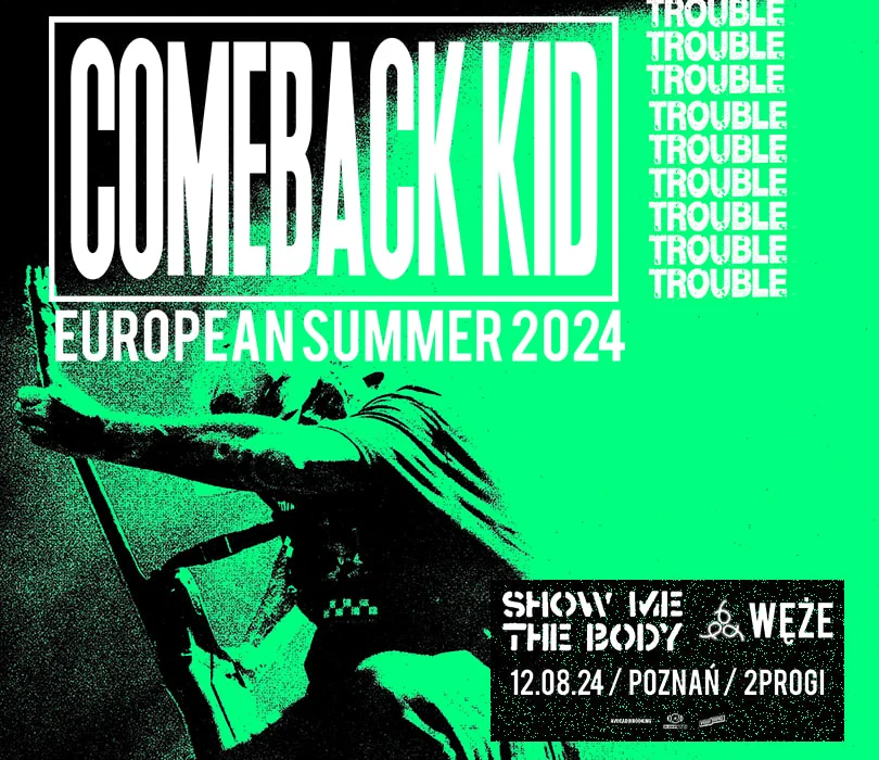 Kanadyjczycy z Comeback Kid powracają do naszego kraju po pięcioletniej przerwie! Grupa wystąpi 12 sierpnia w poznańskim klubie 2Progi na jedynym koncercie w Polsce, gdzie towarzyszyć jej będzie eklektyczne trio Show Me The Body. CBK powstali na początku XXI wieku i praktycznie z marszu weszli do światowej czołówki hardcorepunkowych kapel. Już na wydanym w 2003 roku debiucie “Turn It Around” pokazali, że trzeba mieć ich na uwadze, a 2 lata później, za sprawą krążka “Wake the Dead”, praktycznie wszystkie pary oczu i uszu na scenie były zwrócone tylko na nich. Tytułowy kawałek z tego wydawnictwa bez wątpienia jest hymnem tamtych czasów. Kwintet nie żeruje jednak na swojej przeszłości. Choć po dwóch pierwszych płytach odchodzącego wokalistę Scotta Wade’a na stanowisku zastąpił gitarzysta Andrew Neufeld, a w ostatnich latach dochodziło do różnych rotacji w składzie, Comeback Kid po dziś dzień nagrywają świetne materiały, które będąc oparte na hardcore’owym trzonie ciągle czerpią z coraz to nowszych źródeł, nie tracąc przy tym na rzadko spotykanej w takim natężeniu przebojowości. Jeśli nie wierzycie, to sprawdźcie ich najnowszą EP “Trouble”, która zaczyna się od chyba jednego z najbardziej hiciarskich kawałków CBK - “Trouble In The Winners Circle”. Na jedynym polskim koncercie w tym roku Kanadyjczycy wystąpią w towarzystwie amerykańskiego Show Me The Body. Korzeni tria z Nowego Jorku również można doszukiwać się na scenie hc, jednak muzycznie SMTB jest w tym zestawie zespołem zdecydowanie bardziej eksperymentalnym. Mimo, że wielogatunkowa mieszanka, w której słychać wpływy noise rocka, alternatywnego hip hopu, sludge’u i punka może z opisu wskazywać na totalny chaos, to twórczość grupy wciąga słuchacza swoją nieszablonowością i otwartością. Obie kapele to koncertowe maszyny, więc w Poznaniu szykuje się wieczór, na którym trzeba się stawić. COMEBACK KID +SHOW ME THE BODY 18:30 DRZWI 19:15 WĘŻE 20:00 SHOW ME THE BODY 21:00 COMEBACK KID Szanowni Państwo. Prosimy o kupowanie biletów wyłącznie w autoryzowanych punktach sprzedaży. Poprzez kupno wejściówek od osób trzecich możecie zostać Państwo oszukani. Wstęp na koncert 13+ za pisemną zgodą rodzica. Poniżej 13 lat, wymagana obecność pełnoprawnego opiekuna. Wzór zgody: https://bit.ly/pisemna_zgoda_rodzica Regulamin wydarzenia: https://winiarybookings.pl/regulamin/ W trosce o środowisko zachęcamy Was do pokazywania biletów na telefonie zamiast ich drukowania. --------------------------------------- Wpadaj na Instagram ➡ http://bit.ly/Nasz-instagram Polub nasz profil ➡ http://bit.ly/Nasz--Facebook