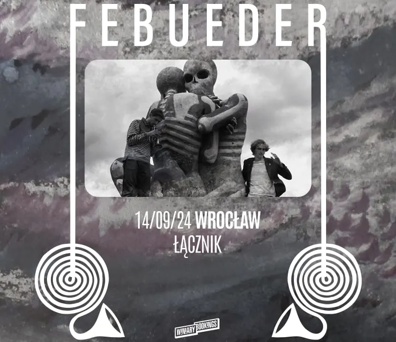 Brytyjski duet Febueder we wrześniu powróci do naszego kraju, gdzie wystąpi 13 września w warszawskiej Hydrozagadce oraz dzień później we wrocławskim klubie Łącznik! Febueder to psychodeliczno-folkowy duet z Ascot w Anglii, w skład którego wchodzą multiinstrumentaliści: Kieran Godfrey (odpowiedzialny również za wokal) oraz Samuel Keysell. Uwagę słuchaczy skupili już za sprawą swojego pierwszego wspólnie skomponowanego kawałka “Alligator”, ale nigdy nie zatrzymali się w miejscu, a przekraczanie gatunkowych granic śmiało można uważać za najbardziej stały element ich twórczości. W zeszłym roku wydali album “Follow The Colonnade”, w marcu natomiast podzielili się nowym singlem “Valley of Kins”, więc kto wie, może na wrześniowych koncertach usłyszymy więcej nowości? Jednego jesteśmy pewni - Febueder na żywo zachwyca, więc jeśli lubicie klimaty Foals, Alt-J czy Beirut, to musicie wpaść na koncerty w Warszawie bądź Wrocławiu.  FEBUEDER (UK)     13.09.2024 Warszawa, Hydrozagadka Bramka 19:00 / Start 20:00   14.09.2024 Wrocław, Łącznik Bramka 19:00 / Start 20:00  Regulamin wydarzenia: https://winiarybookings.pl/regulamin/ W trosce o środowisko zachęcamy Was do pokazywania biletów na telefonie zamiast ich drukowania. ➡ FEBUEDER (UK) - indie/ avant-pop/ alternative https://www.facebook.com/Febueder https://www.instagram.com/febueder/   ”Dire Science”: https://www.youtube.com/watch?v=ZDCl2918Pew “Paramount Tether”: https://www.youtube.com/watch?v=DqpCW5kl_AY ”Alligator”: https://www.youtube.com/watch?v=_gpWrgB7C5I
