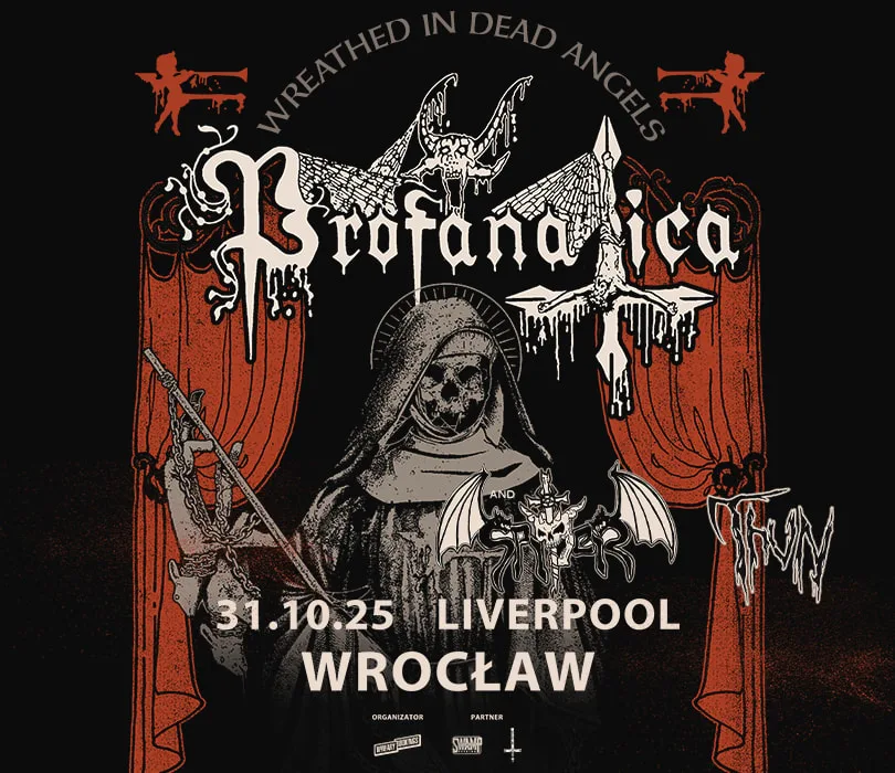 W samym sercu Wrocławia, w noc Halloween, spotkają się dwa oblicza amerykańskiego black metalu. Legendarna Profanatica wystąpi w klubie Liverpool w towarzystwie napędzanego punkiem i horrorem Spiter! Założona w 1990 roku przez Paula Ledneya (ex-Incantation) Profanatica to jeden z pierwszych i najbardziej bezczelnych głosów amerykańskiego black metalu. Ich brzmienie od początku opiera się na prymitywnej furii, bluźnierstwie i nieustannym ataku na wszelkie świętości. Wydana pod koniec kwietnia EPka “Wreathed in Dead Angels” potwierdza, że mimo upływu lat zespół nie stracił nic ze swojego bezlitosnego charakteru, a może nawet stał się jeszcze bardziej radykalny.Spiter to trio z Detroit, którego muzyka łączy dziki, punkowy puls z fascynacją śmiercią, wampiryzmem i grozą klasycznego horroru. W ich surowych, energetycznych utworach pobrzmiewa duch starego rock’n’rolla, podany jednak w opętanej, zupełnie nieironicznej formie. PROFANATICA Support: Spiter31.10.2025 / Wrocław, Liverpool Punkty sprzedaży: www.winiarybookings.pl , Going, Empik Bilety.Szanowni Państwo. Prosimy o kupowanie biletów wyłącznie w autoryzowanych punktach sprzedaży. Poprzez kupno wejściówek od osób trzecich możecie zostać Państwo oszukani.Wstęp na koncert 13+ za pisemną zgodą rodzica. Poniżej 13 lat, wymagana obecność pełnoprawnego opiekuna.Wzór zgody: https://bit.ly/pisemna_zgoda_rodzica_wb Regulamin wydarzenia: https://bit.ly/regulamin_wydarzenia_wb W trosce o środowisko zachęcamy Was do pokazywania biletów na telefonie zamiast ich drukowania.