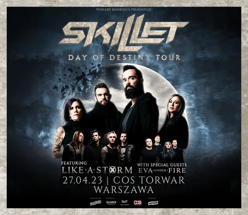 Skillet Warszawa Jeden z najbardziej utytułowanych zespołów rockowych XXI wieku na dwóch koncertach w Polsce! Skillet już w kwietniu wystąpi w Warszawie i Gliwicach w towarzystwie Like A Storm oraz Eva Under Fire? Skillet to jeden z najpopularniejszych zespołów rockowych tego wieku. W dyskografii grupy znajdziemy albumy pokryte złotem, pojedynczą oraz podwójną platyną, które do dzisiaj sprzedały się w łącznej ilości ponad 12 milionów kopii na całym świecie. Oprócz podboju wielu billboardowych notowań, twórczość Skillet została wykorzystywana przez m.in. WWE, Marvel, ESPN, MLB, NHL czy NFL. Na swoim jedenastym w dorobku krążku “Dominion” grupa przekonuje do swojego wyobrażenia buntu. “Nazywam to pozytywną rebelią” mówi basista i wokalista grupy, John Cooper i dodaje: “To bunt przeciw intymnym elementom takim jak strach czy niepokój. To bunt przeciwko zewnętrznym czynnikom, które próbują zmienić cię w kogoś, kim nie chcesz być. To celebracja wolności w naszym życiu i przypomnienie, że trzeba walczyć o rzeczy, w które wierzysz. Może to niepopularna w niektórych miejscach opinia, ale nie ma nic bardziej rock’n’rollowego”. 17 lutego światło dziennie ujrzy “Dominion: Day of Destiny (Deluxe Edition)”, czyli rozwinięcie “Dominion” o 5 dodatkowych utworów, w tym m.in. “Finish Line” z gościnnym udziałem Adama Gontiera z grupy Saint Asonia. Już pod koniec kwietnia autorzy takich przebojów jak “Monster”, “Hero” czy “Feel Invincible” dwukrotnie wystąpią w Polsce, a towarzyszyć im będą: Like A Storm, czyli nowozelandzki zespół hard rockowy, który w zeszłym roku wydał swój czwarty krążek “Okura” oraz łącząca ze sobą elementy rocka, metalu oraz popu formacja Eva Under Fire. SKILLET Supports: LIKE A STORM, EVA UNDER FIRE 27.04.2023 Warszawa, COS Torwar 28.04.2023 Gliwice, Arena Gliwice Punkty sprzedaży: www.winiarybookings.pl, Going, Biletomat.pl, Empik Bilety, Ebilet, Eventim, Ticketmaster Szanowni Państwo. Prosimy o kupowanie biletów wyłącznie w autoryzowanych punktach sprzedaży. Poprzez kupno wejściówek od osób trzecich możecie zostać Państwo oszukani. Wstęp na koncert 13+ za pisemną zgodą rodzica. Poniżej 13 lat, wymagana obecność pełnoprawnego opiekuna. Wzór zgody: https://bit.ly/WiniaryBookings_ZgodaRodzica Regulamin wydarzenia: https://winiarybookings.pl/regulamin/ W trosce o środowisko zachęcamy Was do pokazywania biletów na telefonie zamiast ich drukowania. ➡SKILLET (USA / Atlantic Records) - rock https://www.facebook.com/skillet https://www.instagram.com/skilletmusic ”Monster”: https://www.youtube.com/watch?v=1mjlM_RnsVE ”Hero”: https://www.youtube.com/watch?v=uGcsIdGOuZY ”Finish Line” (feat. Adam Gontier): https://www.youtube.com/watch?v=CC5ZrOuu1_8 ➡LIKE A STORM (Nowa Zelandia) - rock, metal https://www.facebook.com/LikeAStorm https://www.instagram.com/likeastorm ”Low”: https://www.youtube.com/watch?v=_HoMWsCMlLw ”Wish You Hell”: https://www.youtube.com/watch?v=u7JkgwDnDYc ”Love The Way You Hate Me”: https://www.youtube.com/watch?v=5xhubIqV1CI ➡EVA UNDER FIRE (USA / Better Noise Music) - rock https://www.facebook.com/evaunderfireband https://www.instagram.com/evaunderfire ”Ghost”: https://www.youtube.com/watch?v=shA2gpdEnkk ”Unstoppable”: https://www.youtube.com/watch?v=g1KUCIkW2RM ”Blow” (feat. Spencer Charnas): https://www.youtube.com/watch?v=tGfYcCTTY64 --------------------------------------- Wpadaj na Instagram➡http://bit.ly/Nasz-instagram Polub nasz profil➡http://bit.ly/Nasz--Facebook