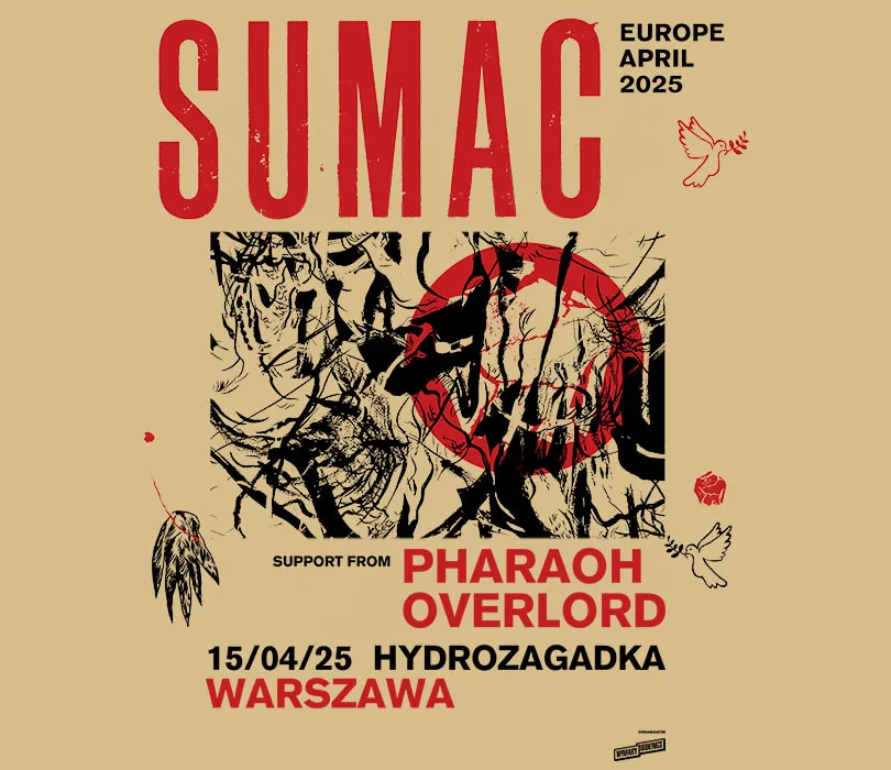 Bezkompromisowe trio ze Stanów Sumac przyjeżdża do Polski! Ich pełne surowości i klimatu brzmienie będzie można usłyszeć w warszawskiej Hydrozagadce 15 kwietnia oraz dzień później w poznańskich 2Progach. Do Amerykanów dołączy finlandzki zespół Pharaoh Overlord. Brzmienie Sumac jest surowe, ciężkie i improwizacyjne, a utwory często przybierają formę długich, intensywnych kompozycji pełnych dysonansów, polirytmii i dronowych pejzaży dźwiękowych. Ich muzyka to nie tylko ciężar instrumentalny, ale i emocjonalny – pełna napięcia, brutalnej szczerości i eksperymentów z formą. Często wprowadzają elementy swobodnej improwizacji, czerpiąc inspiracje z free jazzu i awangardy. Zespół został założony w 2014 roku przez Aarona Turnera (znanego z Isis, Old Man Gloom i Mamiffer) na wokalu i gitarze, Briana Cooka (Russian Circles, Botch, These Arms Are Snakes) na basie oraz Nicka Yacyshyna (Baptists) na perkusji. Każdy album Sumac jest podróżą w nieznane, wymagającą od słuchacza pełnego zaangażowania. W swoim dorobku posiadają 4 płyty studyjne, a ich najnowszym wydaniem jest EP z 2024 roku „The Healer”. Pharaoh Overlord powstał jako poboczny projekt członków Circle, legendarnej fińskiej grupy avant-rockowej. Przez lata ich twórczość przeszła znaczną ewolucję brzmieniową – od hipnotycznego, minimalistycznego stoner rocka, po syntezatorowe pejzaże rodem z kosmicznej muzyki elektronicznej. Fiński zespół eksploruje różne odmiany rocka eksperymentalnego, krautrocka, stonera i elektroniki. Pharaoh Overlord to zespół, który konsekwentnie wymyka się gatunkowym ramom. Ich muzyka jest hipnotyczna i często niemal rytualna, a każdy album to nowe podejście do struktury i brzmienia. Założony 25 lat temu zespół, na swoim koncie posiada 9 płyt studyjnych, a ich ostatnim wydaniem jest album „6” z 2020 roku SUMAC EUROPE APRIL 2025 – SUMAC + PHARAOH OVERLORD 📅15.04.2025 / Warszawa, Hydrozagadka 📅16.04.2025 / Poznań, 2Progi 🎟BILETY: Przedsprzedaż biletów rozpocznie się we wtorek, 21 stycznia o godzinie 11:00 na  https://bit.ly/SUMAC_WWA  https://bit.ly/SUMAC_PZN  Punkty sprzedaży: www.winiarybookings.pl, Going, Empik Bilety  Szanowni Państwo. Prosimy o kupowanie biletów wyłącznie w autoryzowanych punktach sprzedaży. Poprzez kupno wejściówek od osób trzecich możecie zostać Państwo oszukani.   Wstęp na koncert 13+ za pisemną zgodą rodzica. Poniżej 13 lat, wymagana obecność pełnoprawnego opiekuna. Wzór zgody: https://bit.ly/WiniaryBookings_ZgodaRodzica  Regulamin wydarzenia: https://winiarybookings.pl/regulamin/  W trosce o środowisko zachęcamy Was do pokazywania biletów na telefonie zamiast ich drukowania. ➡ SUMAC (USA) – sludge metal / post-metal 🌐 https://www.facebook.com/SUMACBAND 🌐 www.instagram.com/sumacbandofficial 🔊”Rigid Man”: https://www.youtube.com/watch?v=LIBZi7G-sSU 🔊”Attis' Blade live”: https://www.youtube.com/watch?v=C_IvEqvCjeg 🔊”Image of Control (I)”: https://www.youtube.com/watch?v=YKNPgN7CcJ0 ➡ PHARAOH OVERLORD (Finlandia) – rock eksperymentalny / krautrock 🌐 https://www.facebook.com/pharaohoverlord 🔊”Path Eternal”: https://www.youtube.com/watch?v=CxYaH9-o44I 🔊”Mystery Shopper”: https://www.youtube.com/watch?v=8Ge2_ksbH-U 🔊”Without Song All Will Perish”: https://www.youtube.com/watch?v=7Ten-e6iECo --------------------------------------- Wpadaj na Instagram➡http://bit.ly/Nasz-instagram Polub nasz profil➡http://bit.ly/Nasz--Facebook