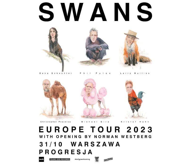 Swans już w czerwcu podzielą się ze światem nowym, szesnastym w swoim dorobku albumem “The Beggar”, a 31 października grupa powróci do Polski na jedyny koncert, który odbędzie się w warszawskim klubie Progresja ? Wieczór otworzy znany ze współpracy z formacją przez niemal cały okres jej istnienia Norman Westberg. Założona ponad 40 lat temu w Nowym Jorku grupa znana jest ze stale ewoluującego brzmienia, na które składają się ponury, brutalny noise-rock czy uduchowiony, eteryczny folk, ale również z ich szalenie głośnych, transcendentnych występów na żywo. Na początku działalności Swans osławiło się za sprawą swoich konfrontacyjnych koncertów oraz hipnotycznych, powtarzalnych dźwięków, jak choćby tych na wydanej w 1983 roku płycie “Filth”. Od mającego premierę w 1986 roku żałobno-industrialnego krążka “Greed” brzmienie zespołu stało się bardziej klimatyczne, w czym duża zasługa dołączenia do formacji wokalistki Jarboe. Znacznie więcej melodii i drobiazgowej wręcz produkcji usłyszymy m.in. na płycie “White Light from the Mouth of Infinity”. Tuż po wydaniu w 1996 roku podwójnego albumu “Soundtracks for the Blind” zespół rozpadł się, lecz paradoksalnie jego reputacja rosła, a samo Swans stało się wielką inspiracją dla wielu artystów eksperymentalnych, noise’owych, post-rockowych, industrialnych, gotyckich czy metalowych. Po ponad dekadzie działalności Giry jako lidera w apokaliptyczno folkowym projekcie The Angels of Light, muzyk wskrzesił grupę w 2010 roku, tym razem już bez udziału Jarboe. Inkarnacja nieoczekiwanie zaowocowała najbardziej chwalonym przez krytyków materiałem formacji “To Be Kind”, który uplasował się w notowaniach TOP 40 zarówno w Stanach Zjednoczonych, jak i Wielkiej Brytanii. Dyskografię zespołu zamyka “Leaving Meaning”, który światło dzienne ujrzał w 2019 roku. SWANS Support: Norman Westberg 31.10.2023 Warszawa, Progresja BILETY: Punkty sprzedaży: www.winiarybookings.pl, Going, Empik Bilety, Biletomat.pl, Eventim Polska, Ebilet, Ticketmaster Polska Szanowni Państwo. Prosimy o kupowanie biletów wyłącznie w autoryzowanych punktach sprzedaży. Poprzez kupno wejściówek od osób trzecich możecie zostać Państwo oszukani. Wstęp na koncert 13+ za pisemną zgodą rodzica. Poniżej 13 lat, wymagana obecność pełnoprawnego opiekuna. Wzór zgody: https://bit.ly/WiniaryBookings_ZgodaRodzica Regulamin wydarzenia: https://winiarybookings.pl/regulamin/ W trosce o środowisko zachęcamy Was do pokazywania biletów na telefonie zamiast ich drukowania. ➡SWANS (USA / Mute Records) - rock eksperymentalny, awangarda https://www.facebook.com/SwansOfficial https://www.instagram.com/swans_official ”The Hanging Man”: https://www.youtube.com/watch?v=6M_K5565jSw ”Children of God”: https://www.youtube.com/watch?v=ImhS-3SMGDA ”Love Will Save You”: https://www.youtube.com/watch?v=HXbcErP-Xok ➡NORMAN WESTBERG (USA) - ambient https://www.facebook.com/NormanWestberg https://normanwestberg1.bandcamp.com ”Bedroom Off” (cały album): https://www.youtube.com/watch?v=Hh53MOc4Y1I ”Bunny Bill”: https://www.youtube.com/watch?v=YTSITXtVJ2s --------------------------------------- Wpadaj na Instagram➡http://bit.ly/Nasz-instagram Polub nasz profil➡http://bit.ly/Nasz--Facebook