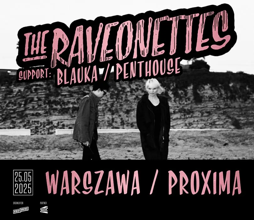 The Raveonettes powracają do Polski! Jedna z największych sensacji w świecie rocka rodem z Danii wystąpi 25 maja w warszawskiej Proximie! Jako support wystąpią Blauka oraz Penthouse!Sune Rose Wagner (gitara, wokal) oraz Sharin Foo (bas, gitara, wokal) od momentu założenia The Raveonettes czerpali inspiracje z amerykańskiego rock’n’rolla rodem z lat 50. oraz popularnego w kolejnej dekadzie XX wieku w Stanach surf rocka. Muzyka duetu wychodzi jednak dalej niż wymienione wyżej wpływy, bowiem usłyszymy w niej m.in. psychodeliczne, ale też surowe gitary, pulsującą elektronikę, a wszystko to zabarwione mrocznymi tekstami śpiewanymi w harmonii składa się na unikalny styl Duńczyków. Na początku milenium, obok The White Stripes, The Hives czy The Strokes, byli częścią powrotu garażowego rocka na salony i inspirowali wiele innych kapel, w tym np. amerykańskie Best Coast, The Drums oraz Dum Dum Girls. “The Raveonettes są wciąż najbardziej cool dzieciakami w Kopenhadze” napisała na łamach największego duńskiego dziennika Politiken dziennikarka Lucia Odoom po jednym z 6 wyprzedanych występów duetu w stolicy Danii pod koniec zeszłego roku. W obecnym Sune i Sharin po 8 latach wydawniczej przerwy powrócą z nowymi materiałami. “Pe’ahi 2”, czyli kontynuacja albumu “Pe’ahi” z 2014, swoją premierę będzie miał 25 kwietnia, a pod koniec roku duet zamierza podzielić się muzyką, nad którą aktualnie pracuje. Ten intensywny czas wzbogacony będzie o koncerty, a jeden z nich zespół zagra w Polsce - 25 maja w warszawskiej Proximie! Blauka to duet, który tworzą Georgina Tarasiuk - autorka tekstów i wokalistka oraz Piotr Lewańczyk - basista, producent, kompozytor. Duet ma na koncie debiutancki album “Miniatura” (2019), którym zaskarbił sobie uznanie zarówno krytyków, jak i wiernych słuchaczy. Drugi album "Wolta" ukaże się już niebawem, a dokładnie 28 maja! Utwór Figura Lichtenberga to najnowszy singiel z tej płyty, koniecznie wpadnijcie zobaczyć ich na żywo!Grupa stworzona przez muzyków znanych z wielu innych projektów (The Black Tapes, Elvis DeLuxe, Colors, The Engineers Band, Jack Saint, Ahimsa). Jako Penthouse starają się wypełnić niezagospodarowane jeszcze, ich zdaniem, miejsce w polskiej muzyce alternatywnej. Jak sami piszą: To co robimy wskazuje na poszukiwanie nowych wizji, tekstur i piosenek w niezamieszkałym miejscu w którym można odnaleźć zakurzone soulowe winyle z 70s-ów i studyjne produkcje z syntetycznych lat 80-tych. W maju 2023 ukazał się ich debiutancki album 'Music Undersea', wydany przez zaprzyjaźnioną Antenę Krzyku. Aktualnie kończą pracę nad drugą płytą.THE RAVEONETTESSupport: Blauka, Penthouse25.05.2025 / Warszawa, ProximaBILETY: https://bit.ly/THE_RAVEONETTES_WWAPunkty sprzedaży: www.winiarybookings.pl, Going, Empik Bilety.Szanowni Państwo. Prosimy o kupowanie biletów wyłącznie w autoryzowanych punktach sprzedaży. Poprzez kupno wejściówek od osób trzecich możecie zostać Państwo oszukani. Wstęp na koncert 13+ za pisemną zgodą rodzica. Poniżej 13 lat, wymagana obecność pełnoprawnego opiekuna.Wzór zgody: https://bit.ly/WiniaryBookings_ZgodaRodzica Regulamin wydarzenia: https://winiarybookings.pl/regulamin/ W trosce o środowisko zachęcamy Was do pokazywania biletów na telefonie zamiast ich drukowania.