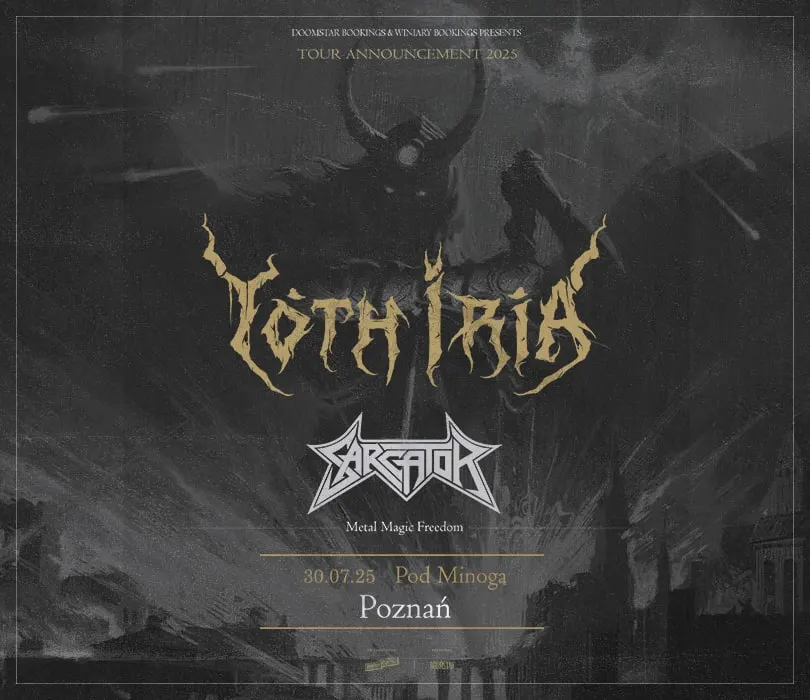 Hellenistyczny black metal i nowa fala czarnego, thrashowego grania spotkają się latem na 2 koncertach w Polsce! Yoth Iria oraz Sarcator zagrają wspólnie 29 lipca w warszawskim VooDoo oraz dzień później w poznańskim klubie Pod Minogą. Yoth Iria to projekt, który powstał w 2019 roku z połączenia sił dwóch zasłużonych dla greckiej sceny blackmetalowej osobowości - Jima Mutilatora (ex-Rotting Christ, Varathron) i The Magusa (ex-Rotting Christ, Necromantia, Thou Art Lord). Choć w szeregach formacji został już tylko ten pierwszy, to Yoth Iria w dalszym ciągu dumnie kroczy oldschoolowymi ścieżkami hellenistycznego, sczerniałego metalu. Usłyszycie to na ich debiutanckiej płycie “As the Flame Withers”, który ukazał się pod skrzydłami naszej rodzimej wytwórni Pagan Records w 2021, oraz jego następcy, wydanym w zeszłym roku nakładem Edged Circle Productions, “Blazing Inferno”. Szwedzi z Sarcator swoją nazwę wzięli łącząc ze sobą Sarcófago i Kreator, co od razu nakierowuje na inspiracje tej kapeli. Jeszcze uczęszczając do liceum młodzi Szwedzi zarejestrowali debiutancki krążek, który parę miesięcy później został nominowany do krajowej nagrody fonograficznej (P3 Guld, 2021) w kategorii rock/metal. Blackthrashowy kierunek podtrzymali na kolejnych albumach - “Alkahest” z 2022 oraz na jeszcze świeżym wydanym w połowie stycznia tego roku pod egidą wytwórni Century Media “Swarming Angels & Flies”. Koniecznie sprawdzajcie tę młodą ekipę, bo ci są na czele nowej fali metalowych zespołów ze Skandynawii! YOTH IRIA Support: Sarcrator 29.07.2025 / Warszawa, VooDoo 30.07.2025 / Poznań, Pod Minogą BILETY: https://bit.ly/YOTH_IRIA_WWA https://bit.ly/YOTH_IRIA_POZNAŃ Punkty sprzedaży: www.winiarybookings.pl, Going, Empik Bilety, Ebilet, Eventim, Ticketmaster Szanowni Państwo. Prosimy o kupowanie biletów wyłącznie w autoryzowanych punktach sprzedaży. Poprzez kupno wejściówek od osób trzecich możecie zostać Państwo oszukani. Wstęp na koncert 13+ za pisemną zgodą rodzica. Poniżej 13 lat, wymagana obecność pełnoprawnego opiekuna. Wzór zgody: https://bit.ly/WiniaryBookings_ZgodaRodzica Regulamin wydarzenia: https://winiarybookings.pl/regulamin/ W trosce o środowisko zachęcamy Was do pokazywania biletów na telefonie zamiast ich drukowania. YOTH IRIA (Grecja / Edged Circle Productions) - black metal https://www.facebook.com/yothiriaofficial https://www.instagram.com/yoth.iria https://yothiria.com ”In The Tongue of Birds”: https://www.youtube.com/watch?v=i77OPoP6OZU We Call Upon the Elements”: https://www.youtube.com/watch?v=9Zz4xCdARww ”The Great Hunter”: https://www.youtube.com/watch?v=mGytxyw5CQE SARCATOR (Szwecja / Century Media Records) - blackened thrash metal https://www.facebook.com/sarcatorband https://www.instagram.com/sarcator ”Where the Void Begins”: https://www.youtube.com/watch?v=YDDzDy7x9ZA ”Swarming Angels & Flies”: https://www.youtube.com/watch?v=GQMxm0IfcUY ”Grave Maggot Future”: https://www.youtube.com/watch?v=GQMxm0IfcUY --------------------------------------- Wpadaj na Instagram➡http://bit.ly/Nasz-instagram Polub nasz profil➡http://bit.ly/Nasz--Facebook