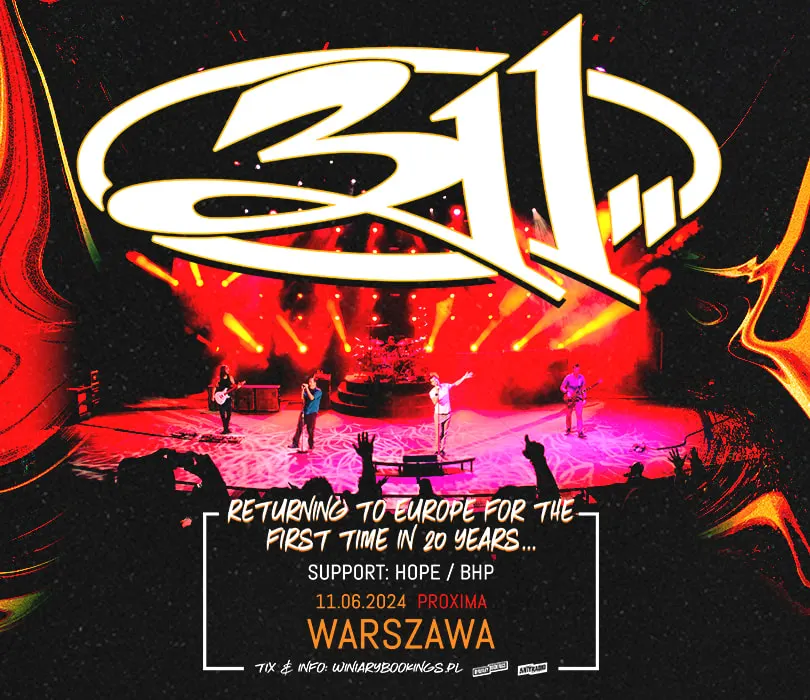 311 powracają po 20 latach do Europy i w ramach tej wizyty po raz pierwszy wystąpią w Polsce! Jedyny koncert Amerykanów w naszym kraju odbędzie się 11 czerwca w warszawskim klubie Proxima. 311 to amerykański zespół rockowy, którego rytmiczna mieszanka hip-hopu, reggae, funku oraz metalu od początku boomu na rap-rocka w latach 90. konsekwentnie zdobywała uznanie słuchaczy, budując przez lata jego oddany fanbase. Od przełomowych w karierze grupy “311” (1995) oraz “Transistor” (1997) - na którym znajdziemy takie przeboje jak “Down”, “All Mixed Up” czy “Beautiful Disaster” - praktycznie wszystkie albumy kwintetu plasowały się w pierwszej dziesiątce notowania Billboard 200 (wyjątkiem jest tutaj ostatni jak dotąd w dyskografii “Voyager” z 2019, który zajął “tylko” 18. miejsce). W czerwcu po 20 latach grupa powróci do Europy na trasę, podczas której nadrobi niewątpliwą zaległość i wystąpi po raz pierwszy w Polsce w warszawskiej Proximie! Patronem wydarzenia jest Antyradio. 311 11.06.2024 Warszawa, Proxima BILETY: Sprzedaż biletów rozpocznie się w piątek, 8 grudnia o godzinie 11:00 na www.winiarybookings.pl Szanowni Państwo. Prosimy o kupowanie biletów wyłącznie w autoryzowanych punktach sprzedaży. Poprzez kupno wejściówek od osób trzecich możecie zostać Państwo oszukani. Wstęp na koncert 13+ za pisemną zgodą rodzica. Poniżej 13 lat, wymagana obecność pełnoprawnego opiekuna. Wzór zgody: https://bit.ly/pisemna_zgoda_rodzica Regulamin wydarzenia: https://winiarybookings.pl/regulamin/ W trosce o środowisko zachęcamy Was do pokazywania biletów na telefonie zamiast ich drukowania. 311 (USA / BMG Rights Management) - rap rock, reggae rock, alternatywa --------------------------------------- Wpadaj na Instagram http://bit.ly/Nasz-instagram Polub nasz profil http://bit.ly/Nasz--Facebook
