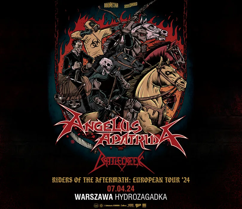 Myśląc o hiszpańskiej scenie metalowej Angelus Apatrida bez wątpienia jest tym zespołem, który jawi się jako jej najważniejszy reprezentant. Thrashmetalowcy w październiku wydali swój najnowszy album “Aftermath” i w ramach jego promocji wystąpią na dwóch koncertach w Polsce - 6 kwietnia w poznańskim klubie 2Progi oraz dzień później w warszawskiej Hydrozagadce. Oba wieczory otworzy niemiecka załoga Battlecreek. Powołany do życia w 2000 roku w miejscowości Albacete kwartet śmiało można sklasyfikować jako jeden z najważniejszych zespołów na współczesnej scenie thrash metalowej. Panowie Guillermo Izquierdo, Jose Izquierdo, Victor Valera oraz David G. Alvarez od blisko 25 lat konsekwentnie kroczą obraną przez siebie ścieżką, co w połączeniu z ciężką pracą procentuje w postaci takiego albumu, jak ich najnowszy “Aftermath”. Wydany w październiku przez wytwórnię Century Media krążek jest dowodem, że songwriterskie skille Hiszpanie podnieśli na jeszcze wyższy level, a sprawnością w posługiwaniu się instrumentami nie odstają od Metalliki, Testament czy Pantery. “Aftermath jest tym, co znaczy dla nas metal” mówi Guillermo. Zaangażowanie, z jakim formacja wystąpiła na dwóch koncertach w Polsce w zeszłym roku pokazuje, że metal znaczy tutaj wiele, dlatego tych dwóch najbliższych występów ze świeżym materiałem po prostu nie można przegapić. Oba wieczory otworzy thrashowa grupa Battlecreek. Niemcy w ostatnim czasie nabierają wiatru w żagle, o czym świadczy wzmożona aktywność koncertowa (występy u boku takich nazw jak Voivod, Testament czy Tankard), ale przede wszystkim plany wydawnicze. Najnowszy i zarazem pierwszy od blisko 9 lat materiał grupy ujrzy światło dzienne wiosną tego roku pod egidą MDD Records.    ANGELUS APATRIDA support: Battlecreek 6.04.2024 Poznań, 2Progi 7.04.2024 Warszawa, Hydrozagadka  Szanowni Państwo. Prosimy o kupowanie biletów wyłącznie w autoryzowanych punktach sprzedaży. Poprzez kupno wejściówek od osób trzecich możecie zostać Państwo oszukani. Wstęp na koncert 13+ za pisemną zgodą rodzica. Poniżej 13 lat, wymagana obecność pełnoprawnego opiekuna. Wzór zgody: https://bit.ly/WiniaryBookings_ZgodaRodzica Regulamin wydarzenia: https://winiarybookings.pl/regulamin/ W trosce o środowisko zachęcamy Was do pokazywania biletów na telefonie zamiast ich drukowania. --------------------------------------- Wpadaj na Instagram➡http://bit.ly/Nasz-instagram Polub nasz profil➡http://bit.ly/Nasz--Facebook