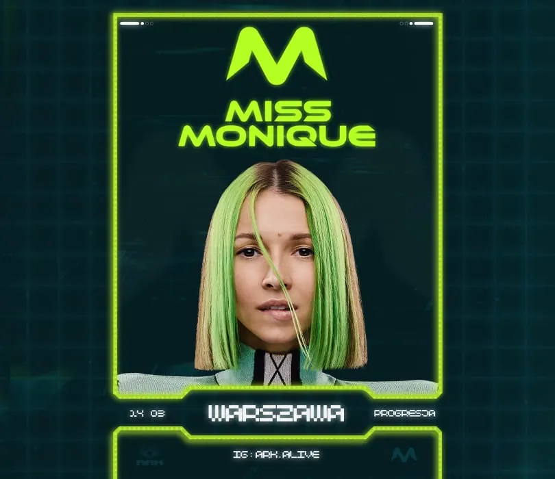 Miss Monique to ukraińska DJ-ka, producentka i właścicielka Siona Records, która zyskała światową popularność dzięki milionowym odsłonom swoich energetycznych setów i perfekcyjnych livestreamów. Wyróżniona przez Amazon Music jako „Artist To Watch 2025”, potwierdziła pierwszą rezydenturę w Hi Ibiza i regularnie występuje na największych scenach — od Coachelli i Ultra Miami po Drumsheds i platformę Cercle. Jako artystka studyjna ma na koncie remixy m.in. dla Madonny, Davida Guetty i OneRepublic, a jej własne single — wydawane przez Armada, Drumcode czy Tomorrowland Music — zdobywają czołowe miejsca na Beatporcie.