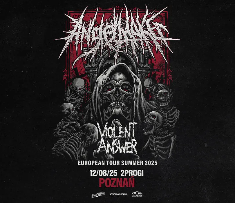 Kanadyjczycy z AngelMaker zaserwują swój brutalny deathcore na dwóch koncertach w Polsce - 11 sierpnia w warszawskiej Hydrozagadce oraz dzień później w klubie 2Progi w Poznaniu. Oba wieczory otworzy poznańska ekipa Violent Answer. Jeśli szukacie miażdżącego strzału, to zdecydowanie powinniście sprawdzić Kanadyjczyków z AngelMaker. W ich deathcorze wychwycić można wpływy sczerniałego thrashu oraz powerviolence, a to wszystko napędzane jest niezwykłą brutalnością. Ich dyskografię zamyka wydany w 2022 roku album “Sanctum”, a ostatni jak dotąd opublikowany singiel, “Relinquished”, ukazał się w październiku zeszłego roku. Violent Answer od kilku lat konsekwentnie budują pozycję na rodzimej scenie. Pierwszy cios zadali w 2020 roku EPką zatytułowaną po prostu Violent Answer”, 2 lata później poprawili “Self-Threat”. W tym roku wydali “Shift”, na którym pokazują, że łącząc ze sobą agresję czerpaną z hardcore’u z nu-metalowym groovem, potrafią tworzyć muzykę oryginalną, pozbawioną przywiązania do szufladek.ANGELMAKERSupport: Violent Answer11.08.2025 / Warszawa, Hydrozagadka12.08.2025 / Poznań, 2ProgiPunkty sprzedaży: www.winiarybookings.pl , Going, Empik Bilety. Szanowni Państwo. Prosimy o kupowanie biletów wyłącznie w autoryzowanych punktach sprzedaży. Poprzez kupno wejściówek od osób trzecich możecie zostać Państwo oszukani. Wstęp na koncert 13+ za pisemną zgodą rodzica. Poniżej 13 lat, wymagana obecność pełnoprawnego opiekuna.Wzór zgody: https://bit.ly/WiniaryBookings_ZgodaRodzica Regulamin wydarzenia: https://winiarybookings.pl/regulamin/ W trosce o środowisko zachęcamy Was do pokazywania biletów na telefonie zamiast ich drukowania.