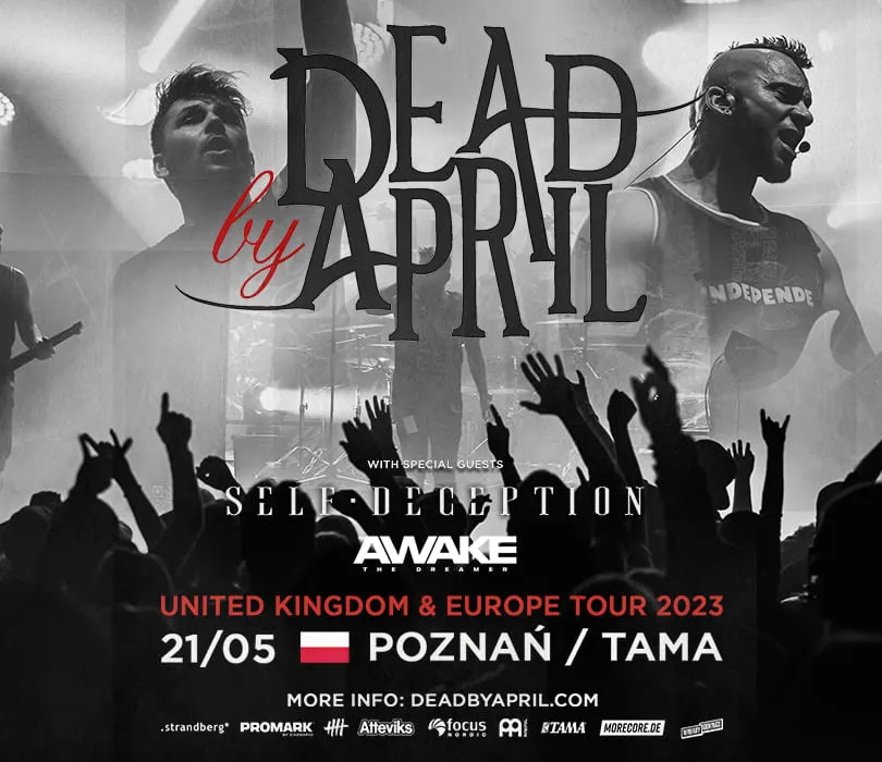 Dead by April po 8 latach powracają do Polski! Obchodzący w zeszłym roku 15-lecie swojej działalności zespół wystąpi 21 maja w poznańskiej Tamie. Jako gości specjalnych na trasie zobaczymy grupy Self Deception oraz Awake The Dreamer. W skład założonego w 2007 roku Dead by April wchodzą Christopher Kristensen (wokal), Pontus Hjelm (gitara, wokal), Marcus Wesslen (bass) oraz Marcus Rosell (perkusja). Zespół zadebiutował w tym samym roku dziesięcio utworowym demo, które krążąc po internecie zebrało duże grono odbiorców. W 2009 roku grupa podpisała kontrakt z wytwórnią Universal Music, by krótko potem pod jej egidą wydać swój pierwszy album, nazwany po prostu “Dead by April”. Promujący go singiel “Losing You” szybko stał się hitem i przez 2 tygodnie utrzymywał się na pierwszym miejscu szwedzkiej listy przebojów. Dyskografię formacji zamyka wydany w 2017 krążek “Worlds Collide”, lecz single “Better Than You” i “Me”, które ukazały się w zeszłym roku mogą wskazywać na intensywne prace formacji nad nowym wydawnictwem. Szwedzi słyną z łączenia metalcore’a z elementami popu, nu metalu, techno oraz emo. Na jedynym koncercie w Polsce Dead by April wystąpią w towarzystwie dwóch zespołów ze Szwecji - Self Deception promującego swoją najnowszą płytę “You Are Only As Sick As Your Secrets”, której premiera przewidywana jest na luty tego roku oraz obracającego się w klimatach post hardcore Awake The Dreamer. DEAD BY APRIL Special Guests: Self Deception + Awake The Dreamer 21.05.2023drzwi 18:30, start 19:00 Poznań, Tama BILETY: Sprzedaż biletów rozpocznie się w piątek, 3 lutego o godzinie 12:00 Punkty sprzedaży: www.winiarybookings.pl, Going, Biletomat.pl, Empik Bilety, Ebilet, Eventim, Ticketmaster Szanowni Państwo. Prosimy o kupowanie biletów wyłącznie w autoryzowanych punktach sprzedaży. Poprzez kupno wejściówek od osób trzecich możecie zostać Państwo oszukani. Wstęp na koncert 13+ za pisemną zgodą rodzica. Poniżej 13 lat, wymagana obecność pełnoprawnego opiekuna. Wzór zgody: https://bit.ly/WiniaryBookings_ZgodaRodzica Regulamin wydarzenia: https://winiarybookings.pl/regulamin/ W trosce o środowisko zachęcamy Was do pokazywania biletów na telefonie zamiast ich drukowania. ➡DEAD BY APRIL (Szwecja) - metalcore https://www.facebook.com/deadbyapril https://www.instagram.com/deadbyapril_official ”Losing You”: https://www.youtube.com/watch?v=4xFDmYl3l6w ”Better Than You”: https://www.youtube.com/watch?v=afWtN1z-j-M ”Collapsing”: https://www.youtube.com/watch?v=sBtqO0HUJGo ➡SELF DECEPTION (Szwecja) - modern rock https://www.facebook.com/selfdeceptionsthlm https://www.instagram.com/selfdecsthlm Fight Fire with Gasoline”: https://www.youtube.com/watch?v=cGU9WXVV0JQ ”TicToc (Brace For Impact)”: https://www.youtube.com/watch?v=iNvhPSxFKxA ”Hell and Back”: https://www.youtube.com/watch?v=6dBZWwuuKVc ➡AWAKE THE DREAMER ( Szwecja / Arising Empire) - post hardcore https://www.facebook.com/awakethedreamerofficial https://www.instagram.com/awakethedreamer ”Alone”: https://www.youtube.com/watch?v=3a5uc8f58UE ”Believe”: https://www.youtube.com/watch?v=R2Bl75Rp4JE ”Your Mind”: https://www.youtube.com/watch?v=YCpUaTdN000 --------------------------------------- Wpadaj na Instagram ➡ http://bit.ly/Nasz-instagram Polub nasz profil ➡ http://bit.ly/Nasz--Facebook
