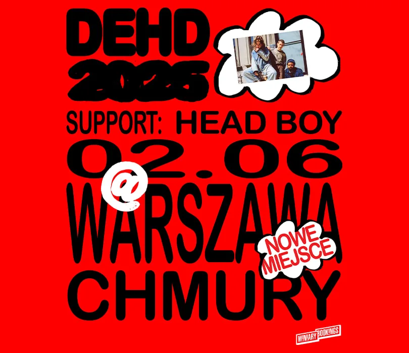 Amerykańskie, indie rockowe DEHD zagra w Polsce! Trio z Chicago zaprezentuje się w warszawskich Chmurach już 2 czerwca, gdzie wystąpi w towarzystwie brytyjskiej grupy headboy!Muzyka DEHD jest minimalistyczna, często oparta na prostych liniach basowych i chwytliwych riffach gitarowych. DEHD czerpie inspiracje z różnych gatunków i epok muzyki niezależnej, w tym z lat 80. i 90. (post-punk, dream pop), ale także z surf rocka i brzmień garażowych. DEHD zdobyli reputację jako jeden z najciekawszych zespołów na scenie niezależnej, dzięki umiejętności przekazywania skomplikowanych emocji w prostych, chwytliwych utworach. W wirze rodzących się nowych relacji i kończących związków, ich teksty jednocześnie wywyższają miłość, by zaraz potem ją kwestionować. Emocjonalne dysonanse, które są opisywane w twórczości DEHD dodają autentyczności artystom, jednak napawają niespokojnym optymizmem. Zespół rozpoczął swoją działalność w 2015 roku, wydając 5 płyt studyjnych. Najnowsze wydawnictwo grupy „Poetry”, ujrzało światło dzienne wiosną 2024 roku. Romantyzacja miłości oraz goryczy, która może być jej konsekwencją, zabiera słuchacza w emocjonalną podróż, która jest pełna piękna, zawodu, nadziei i konfrontacji. Headboy to brytyjskie trio, które powstało dzięki przyjacielskiej więzi oraz wspólnej pasji do muzyki i piłki nożnej. Mars, Oli i Jess na swoim koncie mają tylko EPkę “Was It What You Thought” i kilka singli, ale to już wystarczyło to zrobienia małego zamieszania na Wyspach, wyprzedania kilku koncertów oraz zagraniu u boku m.in. Goat Girl i Porridge Radio. Ich połączenie popu z post-punkiem rewelacyjnie sprawdza się na żywo, więc nie spóźnijcie się na ich koncert!DEHD Support: headboy 02.06.2025 Warszawa, Chmury https://bit.ly/DEHD_WWA Punkty sprzedaży: www.winiarybookings.pl, Going, Empik Bilety.Szanowni Państwo. Prosimy o kupowanie biletów wyłącznie w autoryzowanych punktach sprzedaży. Poprzez kupno wejściówek od osób trzecich możecie zostać Państwo oszukani. Wstęp na koncert 13+ za pisemną zgodą rodzica. Poniżej 13 lat, wymagana obecność pełnoprawnego opiekuna.Wzór zgody: https://bit.ly/WiniaryBookings_ZgodaRodzicaRegulamin wydarzenia: https://winiarybookings.pl/regulamin/W trosce o środowisko zachęcamy Was do pokazywania biletów na telefonie zamiast ich drukowania.DEHD (USA/Fat Possum Records) – indie rockhttps://www.instagram.com/dehdforever/„Dog Days”: https://www.youtube.com/watch?v=LbdHMLEYwwA„Bad Love”: https://www.youtube.com/watch?v=zxKvg8pTcc4„Lucky”: https://www.youtube.com/watch?v=xOqm5kT7o1k HEADBOY (Wielka Brytania) - indie rock, alternatywa https://www.facebook.com/headboyband https://www.instagram.com/headboyband/ „Jackal Lake”: https://www.youtube.com/watch?v=1Y2yiVZ4kAA „Reservoir”: https://www.youtube.com/watch?v=tRs5izUkfAg---------------------------------------Wpadaj na Instagram➡http://bit.ly/Nasz-instagramPolub nasz profil➡http://bit.ly/Nasz--Facebook