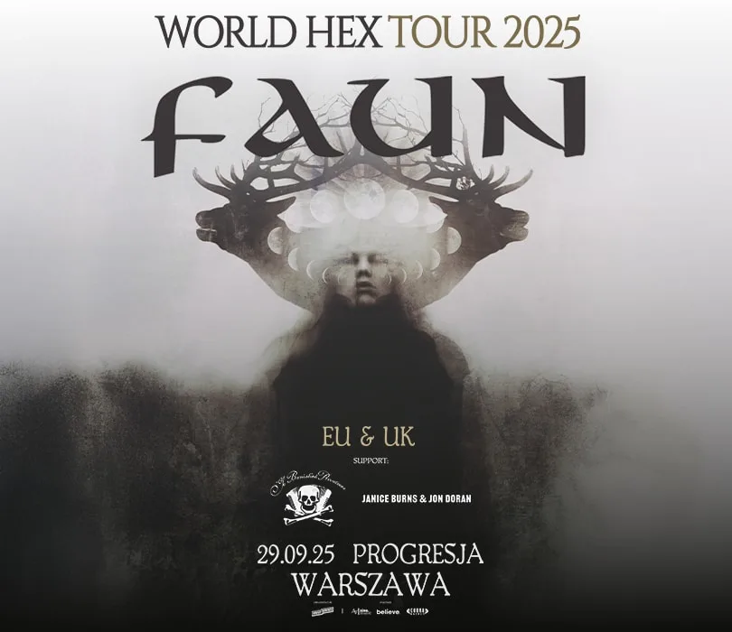 Faun rusza w trasę! Niemiecka ekipa wystąpi 28 września w krakowskim Klubie Studio, a dzień później w warszawskiej Progresji. W ramach trasy „WORLD HEX TOUR 2025” do zespołu inspirującego się średniowieczem, dołączą Ye Banished Privateers oraz Janice Burns & Jon Doran.Faun to jeden z wiodących przedstawicieli gatunku, który łączy średniowieczne instrumenty z współczesnym, ciężkim brzmieniem. Zespół znacząco wpłynął na rozwój całego nurtu, udowadniając, że tradycję można połączyć z nowoczesnością w sposób przemawiający zarówno do fanów muzyki dawnej, jak i współczesnych słuchaczy. Dzięki swojej twórczości zainspirowali wielu ludzi i przyczynili się do popularyzacji tego unikalnego stylu na całym świecie. Faun zagrał ponad 1000 koncertów, zachwycając publiczność zarówno w kameralnych, kulturalnych salach, jak i na dużych festiwalach folkowych czy metalowych. Dzięki wykorzystaniu średniowiecznych instrumentów, takich jak lutnie, harfy, duduk, nyckelharpa, dudy czy bębny ramowe, nadają swoim występom autentyczny i niepowtarzalny klimat. Od 2002 roku wydali jedenaście albumów studyjnych, a ich single z 2024 roku pokazują, że niemieccy muzycy nie zamierzają zwalniać tempa.Ye Banished Privateers rozpoczęli swoją niezwykłą muzyczną podróż w 2008 roku, przenosząc się w czasie o 300 lat, by odtworzyć surowe, ale pełne przygód życie XVIII-wiecznych piratów. Żeglując przez wzburzone wody pirackiego folku i punku, stworzyli pięć albumów wypełnionych pieśniami i balladami o życiu poza prawem, walce z opresją oraz sprzeciwie wobec nacjonalizmu. Załoga zespołu liczy 30 muzyków, z których kilkunastu „walczy” na scenie przy pomocy skrzypiec, banjo czy akordeonu. Podczas koncertów zachwycają historycznymi kostiumami, a dzięki inscenizacjom i odgrywaniu scen zdobyli miano „najlepiej przebranej pirackiej grupy muzycznej na świecie”. Nie przegapcie okazji, by zanurzyć się w świat morskich opowieści i muzycznej anarchii. Zespół nie bierze jeńców – dołączcie do załogi!Janice Burns & Jon Doran to nagradzany duet angielsko‑szkocki, który połączył siły w 2017 roku, odkrywając wspólną pasję do tradycyjnych pieśni niosących opowieści o życiu, miłości, naturze i tęsknocie. Na debiutanckim albumie “No More the Green Hills” urzekli oszczędnymi, pełnymi przestrzeni i harmonii aranżacjami, a w listopadzie 2024 roku wydali “Great Joy to the New”, na którym sięgają po mniej znane kolędy i pieśni adwentowe. Na scenie duet urzeka naturalnością, ciepłem i osobistym podejściem - ich koncerty to kameralne spotkania, pozostawiające niezapomniane wrażenie.FAUN - WORLD HEX TOUR 2025 Support: Ye Banished Privateers, Janice Burns & Jon Doran28.09.2025KRAKOWSTUDIO29.09.2025WARSZAWAPROGRESJA18.30 DRZWI19.30 JANICE BURNS & JON DORAN20.15 YE BANISHED PRIVATEERS21.30 FAUNPunkty sprzedaży: www.winiarybookings.pl , Going, Empik Bilety.Szanowni Państwo. Prosimy o kupowanie biletów wyłącznie w autoryzowanych punktach sprzedaży. Poprzez kupno wejściówek od osób trzecich możecie zostać Państwo oszukani.Wstęp na koncert 13+ za pisemną zgodą rodzica. Poniżej 13 lat, wymagana obecność pełnoprawnego opiekuna.Wzór zgody: https://bit.ly/pisemna_zgoda_rodzica_wb Regulamin wydarzenia: https://bit.ly/regulamin_wydarzenia_wb W trosce o środowisko zachęcamy Was do pokazywania biletów na telefonie zamiast ich drukowania.