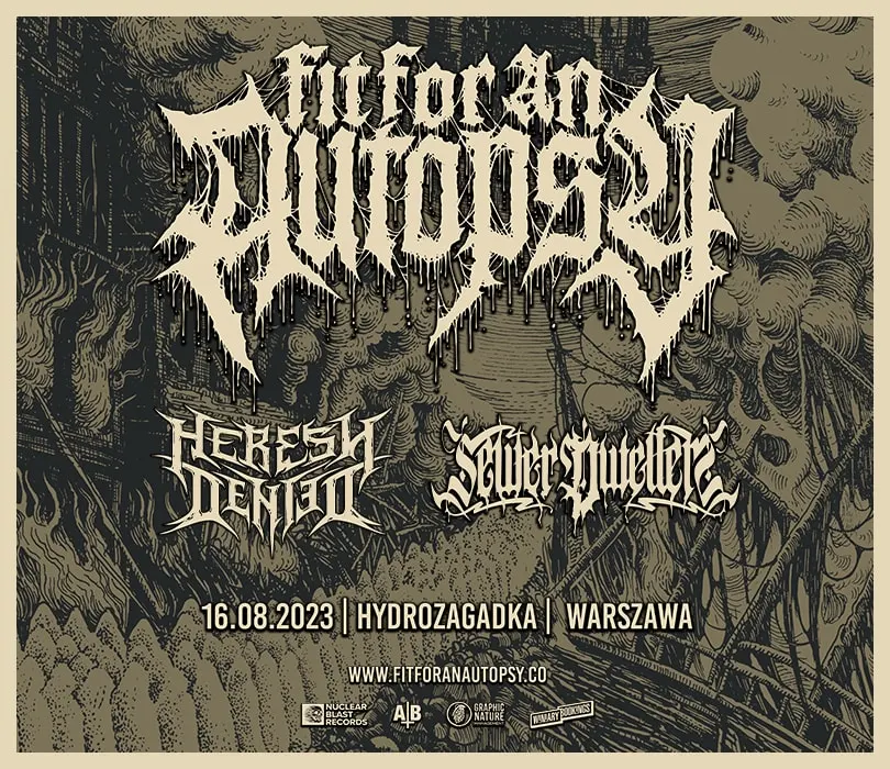 Deathcore’owy walec z New Jersey Fit For An Autopsy wystąpi 16 sierpnia na headlinerskim koncercie w Warszawie! Zespół przed jesienną trasą z Thy Art Is Murder i Whitechapel na rozgrzewkę zagra latem dosłownie kilka koncertów w Europie i powoli będzie domykał cykl promocji ostatniego materiału “Oh What The Future Holds”. W kwietniu, wraz z Thy Art Is Murder i Malevolence, grupa wydała split “The Aggression Sessions”, na którym każda z ekip nagrała po jednym singlu i coverze. Fit For An Autopsy podzieliło się utworem “Hellions” oraz swoją interpretacją “Under A Serpent Sun” legendarnego At The Gates. Koniecznie sprawdźcie kompozytorską formę FFAA i meldujcie się w sierpniu w Hydro! Wstęp na koncert 13+ za pisemną zgodą rodzica. Poniżej 13 lat, wymagana obecność pełnoprawnego opiekuna. Wzór zgody: https://bit.ly/WiniaryBookings_ZgodaRodzica Regulamin wydarzenia: https://winiarybookings.pl/regulamin/ FIT FOR AN AUTOPSY (USA / Nuclear Blast) - deathcore https://www.facebook.com/FitForAnAutopsyOfficial https://www.instagram.com/fitforanautopsy ”Far From Heaven”: https://www.youtube.com/watch?v=OEicHBvqd2Y ”Pandora”: https://www.youtube.com/watch?v=i3iWnhd7FMw Hellions”: https://www.youtube.com/watch?v=m02W2kYSwYE