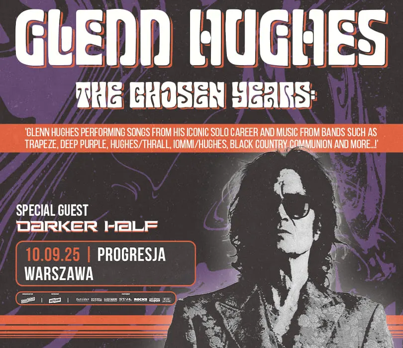 Glenn Hughes, były basista i wokalista Deep Purple, znany milionom jako „Głos Rocka”, członek Rock and Roll Hall of Fame i obecny frontman supergrupy rockowej Black Country Communion, ​​wykona największe przeboje ze swojej fascynującej kariery! Artysta w Polsce wystąpi dwukrotnie: 8 września w krakowskim klubie Studio, a 10 września zaprezentuje się w stołecznej Progresji! Jako support na obydwóch koncertach wystąpi Australijskie Darker Half.Zapowiada się niesamowita i dynamiczna podróż w czasie, dwugodzinny mistrzowski koncertowy popis i hołd dla trwającej 5 dekad kariery tego kultowego artysty. Na żywo będzie można usłyszeć kompozycje, które Hughes napisał z niektórymi z najbardziej pionierskich i wpływowych zespołów i muzyków w historii rocka – w tym utwory Trapeze, Deep Purple, Black Sabbath, Iommi, Hughes/Thrall i Black Country Communion. Co więcej, w programie zaprezentowana zostanie zupełnie nowa muzyka z nadchodzącego solowego albumu Glenna, którego premiera planowana jest na lato 2025 roku. Oprócz samego Hughesa, jako wokalisty prowadzącego i gitarzysty basowego, w skład zespołu koncertowego wchodzą Soren Anderson na gitarze i perkusista Ash Sheehan. Glenn Hughes został przyjęty do Rock and Roll Hall of Fame jako członek składu MK 3 Deep Purple. Spędził pierwsze lata swojej kariery jako basista oraz wokalista Purpli i występował na klasycznych albumach „Burn” (1974), „Stormbringer” (1974) i” Come Taste The Band” (1975). Natomiast pierwszym ważnym zespołem, którego członkiem był Hughes, a który odniósł znaczący sukces, był Trapeze. Od 1992 roku Hughes intensywnie koncertował w Europie, Japonii i Ameryce Południowej, promując solowe albumy, ale ostatnio związany był z supergrupą Black Country Communion, w której występuje z gitarzystą Joe Bonamassą, klawiszowcem Derekiem Sherinianem (Dream Theater) i perkusistą Jasonem Bonhamem, synem zmarłej legendy Led Zeppelin Johna Bonhama. W 2016 roku wydał swój uznany przez krytyków solowy album „Resonate” zawierający rockowy hit radiowy „Heavy”, a w 2017 roku ukazał się czwarty album studyjny Black Country Communion „BCCIV”, który spotkał się z entuzjastycznymi recenzjami, (kolejny “V” wydany został w czerwcu zeszłego roku). Na 2025 rok zapowiadana jest także nowa solowa płyta Glenna Hughesa. Darker Half to melodyjny zespół metalowy pochodzący z Sydney w Australii. Ich brzmienie zakorzenione jest w tradycyjnym heavy metalu. Porywające, wybuchowe solówki osadzone są na solidnej, a zarazem pomysłowej sekcji rytmicznej, a wszystko to dopełnia wokalista o skali dorównującej największym gwiazdom rocka, co sprawia, że zespół wyróżnia się na tle innych. Darker Half dzielili scenę z czołówką światowego metalu, w tym z zespołami takimi jak: Queensrÿche, Edguy, Sonata Arctica, Dark Funeral, Children of Bodom, Nightwish, Accept, Helloween, Stratovarius, Rage i wieloma innymi.GLENN HUGHESSUPPORT DARKER HALF08.09.2025 / Kraków, Studio10.09.2025 / Warszawa, Progresja19:00 OTWARCIE DRZWI19:30 DARKER HALF20:40 GLENN HUGHESPunkty sprzedaży: www.winiarybookings.pl, Going, Empik Bilety. Szanowni Państwo. Prosimy o kupowanie biletów wyłącznie w autoryzowanych punktach sprzedaży. Poprzez kupno wejściówek od osób trzecich możecie zostać Państwo oszukani. Wstęp na koncert 13+ za pisemną zgodą rodzica. Poniżej 13 lat, wymagana obecność pełnoprawnego opiekuna.Wzór zgody: https://bit.ly/WiniaryBookings_ZgodaRodzica Regulamin wydarzenia: https://winiarybookings.pl/regulamin/ W trosce o środowisko zachęcamy Was do pokazywania biletów na telefonie zamiast ich drukowania.