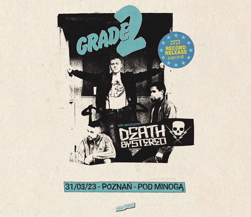 Słynący z niesamowitych występów na żywo i wyjątkowej muzykalności - Grade 2 wystąpią 31.03.2023 roku w poznańskim klubie Pod Minogą! Świetnie znani polskiej publiczności artyści z UK promować będą swój nadchodzący album “Grade 2”. Gośćmi specjalnymi będą równie głośni, tworzący hardcore punk Amerykanie z Death By Stereo. To wydarzenie, które przeniesie Was do korzeni street punka. Ich muzyka określana jest jako klasyczne punkowe brzmienie. Zespół początkowo grał covery Stranglers i The Jam w lokalnych pubach, jednak później przeszli do pisania własnego materiału i podpisali kontrakt z Contra Records. Napisanie i nagranie debiutanckiego albumu “Mainstream View”, który ukazał się w 2016 roku, zajęło im trochę czasu, ale szybko po ich pierwszym wydaniu wydali Break the Routine z 2017 roku. Po dwóch albumach regularnie koncertowali, po drodze spotykając i zaprzyjaźniając się z Larsem Fredriksenem (Rancid). Ich trzecie wydawnictwo dla legendarnej wytwórni Hellcat Records to potężna, autentycznie opowiedziana historia przez trzech chłopaków z punkiem krążącym w żyłach, którą trzeba usłyszeć na żywo. Grade 2 Special guest: Death By Stereo 31.03.2023 Pod Minogą, Poznań BILETY: Punkty sprzedaży: www.winiarybookings.pl, Going, Empik Bilety, Biletomat.pl, Eventim, Ebilet.pl, Ticketmaster Polska ️Szanowni Państwo. Prosimy o kupowanie biletów wyłącznie w autoryzowanych punktach sprzedaży. Poprzez zakup wejściówek od osób trzecich możecie zostać Państwo oszukani.⚠️ Wstęp na koncert 13+ za pisemną zgodą rodzica. Poniżej 13 lat, wymagana obecność pełnoprawnego opiekuna. Wzór zgody: https://bit.ly/WiniaryBookings_ZgodaRodzica Regulamin wydarzenia: https://bit.ly/WB_Regulamin W trosce o środowisko zachęcamy Was do pokazywania biletów na telefonie zamiast ich drukowania. ➡ GRADE 2 (Hellcat Records / UK) – punk https://www.facebook.com/grade2iow/ https://www.instagram.com/grade2iow/ ”All I Know”: https://www.youtube.com/watch?v=OMVoMmRSjRE ”Pubwatch”: https://www.youtube.com/watch?v=xggxT3efrGU ”Mainstream View”: https://www.youtube.com/watch?v=8490WEFgpno ➡ DEATH BY STEREO (USA) - hardcore, punk Death by Stereo to amerykański zespół hardcore punk założony w Orange County w Kalifornii około 1998 roku przez frontmana Efrema Schulza. Są dobrze znani ze swoich energetycznych występów i misternej gry na gitarze. https://www.facebook.com/deathbystereo/ https://www.instagram.com/deathbystereoband/ Welcome To The Party - https://www.youtube.com/watch?v=Dsu4r-WJgrs I GIVE MY LIFE - https://www.youtube.com/watch?v=ZcUFfI6urW4 I SING FOR YOU - https://www.youtube.com/watch?v=bTLeOEYYQBs --------------------------------------- Wpadaj na Instagram http://bit.ly/Nasz-instagram Polub nasz profil http://bit.ly/Nasz--Facebook