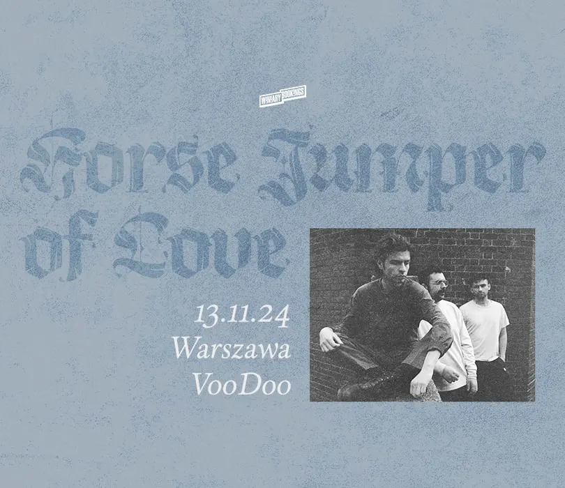 Horse Jumper of Love, bostońskie indie rockowe trio wystąpi na dwóch koncertach w Polsce! Widzimy się 12 listopada w poznańskim klubie Pod Minogą i dzień później w warszawskim VooDoo. Artyści będą promować swój najnowszy album Disaster Trick . Horse Jumper of Love znani są ze swoich bezkompromisowych piosenek, które często z delikatnych zmieniają się w porywające. Ich muzyka jest pełna intensywności dzięki sugestywnym tekstom i aranżacjom frontmana Dimitriego Giannopoulosa. Bostońskie trio, w który skład wchodzi także basista John Margaris i perkusista James Doran, już dawno przekroczyło granice indie. Nowy album Disaster Trick , który ukaże się 16 sierpnia nakładem Run For Cover Records ma dać temu kolejny dowód. Podczas gdy ostatnia płyta Horse Jumper of Love z 2023 roku Heartbreak Rules wyróżniała się dość spokojnym podejściem do pisania piosenek, “Disaster Trick” podkręca głośność. Nie brakuje tu mocnej perkusji i gitary, ale bez zbędnych dodatków. Giannopoulos przyznaje, że są w nim dwa wilki. Jeden lubi bardzo łagodną muzykę, a drugi bardzo ciężką. Ten kontrast, pomiędzy ciszą a głośnością występuje w całym Disaster Trick , przeplatając się silnymi emocjami. Jak ten materiał sprawdzi się na żywo? Przekonamy się już wkrótce! HORSE JUMPER OF LOVE 12.11.2024 Poznań, Pod Minogą BILETY: Przedsprzedaż biletów rozpocznie się w piątek, 19 lipca o godzinie 10:00. https://bit.ly/HORSE_JUMPER_OF_LOVE_POZ 13.11.2024 Warszawa, VooDoo BILETY: Przedsprzedaż biletów rozpocznie się w piątek, 19 lipca o godzinie 10:00. https://bit.ly/HORSE_JUMPER_OF_LOVE_WWA BILETY: https://bit.ly/HELLRIPPER_PZN Punkty sprzedaży: www.winiarybookings.pl, Going, Empik Bilety Szanowni Państwo. Prosimy o kupowanie biletów wyłącznie w autoryzowanych punktach sprzedaży. Poprzez kupno wejściówek od osób trzecich możecie zostać Państwo oszukani. Wstęp na koncert 13+ za pisemną zgodą rodzica. Poniżej 13 lat, wymagana obecność pełnoprawnego opiekuna. Wzór zgody: https://bit.ly/pisemna_zgoda_rodzica Regulamin wydarzenia: https://winiarybookings.pl/regulamin/ W trosce o środowisko zachęcamy Was do pokazywania biletów na telefonie zamiast ich drukowania. HORSE JUMPER OF LOVE (USA / Run For Cover Records) - indie rock https://www.facebook.com/horsejumperoflove https://www.instagram.com/horsejumperoflove/ Snow Angel https://www.youtube.com/watch?v=Av440J3y_z0 Wink https://www.youtube.com/watch?v=uBZpWzHS-tY Heartbreak Rules https://www.youtube.com/watch?v=Wjo-ygyQFWQ