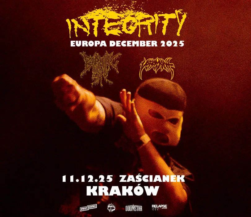 Integrity - apokaliptyczny klasyk zmetalizowanego hardcore’u, powraca do Polski! 11 grudnia wpływowa grupa wystąpi w krakowskim Zaścianku. Jako support zagrają Burning Sky oraz Vehement. Integrity to amerykańska grupa założona w Cleveland w 1988 roku, a od 2003 roku bazująca w Belgii. Zespół zaczynał od grania hardcore punka, do którego bardzo szybko zaczął inkorporować elementy heavy metalu oraz thrashu, czego efekt usłyszymy już na ich legendarnym debiucie “Those Who Fear Tomorrow”. Formacja z miejsca stała się jedną z najbardziej wpływowych dla metalcore’owej sceny i wymieniana jest jednym tchem obok takich nazw jak Converge, Hatebreed i Killswitch Engage. Ekipa, której niezmiennie dowodzi Dwid Hellion, w swoich tekstach porusza tematy związane z religią, siłami nadprzyrodzonymi, chorobami psychicznymi, indywidualizmem oraz okultyzmem. Twórczość Integrity cechują bezkompromisowość, szczerość i agresja, o czym wielokrotnie przekonaliście się na ich koncertach. W grudniu powrócą do naszego kraju, więc jeśli jeszcze nie widzieliście ich w akcji, to najwyższy czas to zmienić. Przed Integrity na scenie zobaczymy dwa składy doskonale odnajdujące się w mieszaniu hc i metalu - Burning Sky i Vehement. Pierwsi mają na koncie 4 albumy, a ostatni z nich “Despair of the Damned”, ukazał się w październiku zeszłego roku nakładem Enigmatic Music. W barwach tej samej wytwórni 20 marca światło dzienne ujrzał debiutancki album Vehement, “Collision Course”. INTEGRITYSupport: Burning Sky, Vehement11.12.2025 / Kraków, ZaścianekPunkty sprzedaży: www.winiarybookings.pl, Going, Empik Bilety. Szanowni Państwo. Prosimy o kupowanie biletów wyłącznie w autoryzowanych punktach sprzedaży. Poprzez kupno wejściówek od osób trzecich możecie zostać Państwo oszukani.Wstęp na koncert 13+ za pisemną zgodą rodzica. Poniżej 13 lat, wymagana obecność pełnoprawnego opiekuna.Wzór zgody: https://bit.ly/pisemna_zgoda_rodzica_wb W trosce o środowisko zachęcamy Was do pokazywania biletów na telefonie zamiast ich drukowania.