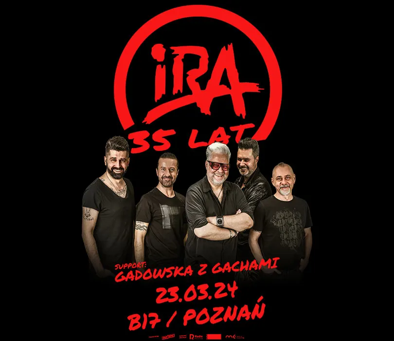 Legendarny polski zespół rockowy IRA kontynuuje obchody swojego 35-lecia na scenie! Autorzy takich przebojów jak “Mój dom”, “Bierz mnie” czy “Parę Chwil” już 23 marca wystąpią w poznańskim klubie B17. Wieczór otworzą Gadowska z Gachami! IRA to założona w 1987 roku legenda polskiego rocka. Zespół z Radomia szturmem wdarł się do grona jednych z najważniejszych wykonawców gatunku w pierwszej połowie lat 90. za sprawą takich albumów jak “Mój dom”, “1993 rok” czy koncertowej “Live”. Grupa, której utwory już od 35 lat regularnie plasują się na listach przebojów w swojej karierze wydała 12 krążków, a jej dyskografię zamyka “Jutro” z 2021. Po sukcesie trasy “Ira - 35 lecie” formacja zamierza kontynuować obchody jubileuszu z fanami i już 23 marca powróci do Poznania, gdzie podczas koncertu w klubie B17 zapewni publiczności wieczór pełen hitów, energicznych riffów i sentymentów. IRA - 35 lat na bis Support: Gadowska z Gachami 23.03.2024 Poznań, B17 drzwi, 19:00, start 20:00 Patronat: Radio Poznań, Nasz Głos Poznański, MC Radio Poznań Szanowni Państwo. Prosimy o kupowanie biletów wyłącznie w autoryzowanych punktach sprzedaży. Poprzez kupno wejściówek od osób trzecich możecie zostać Państwo oszukani. Wstęp na koncert 13+ za pisemną zgodą rodzica. Poniżej 13 lat, wymagana obecność pełnoprawnego opiekuna. Wzór zgody: https://bit.ly/WiniaryBookings_ZgodaRodzica Regulamin wydarzenia: https://winiarybookings.pl/regulamin/ W trosce o środowisko zachęcamy Was do pokazywania biletów na telefonie zamiast ich drukowania. --------------------------------------- Wpadaj na Instagram➡http://bit.ly/Nasz-instagram Polub nasz profil➡http://bit.ly/Nasz--Facebook