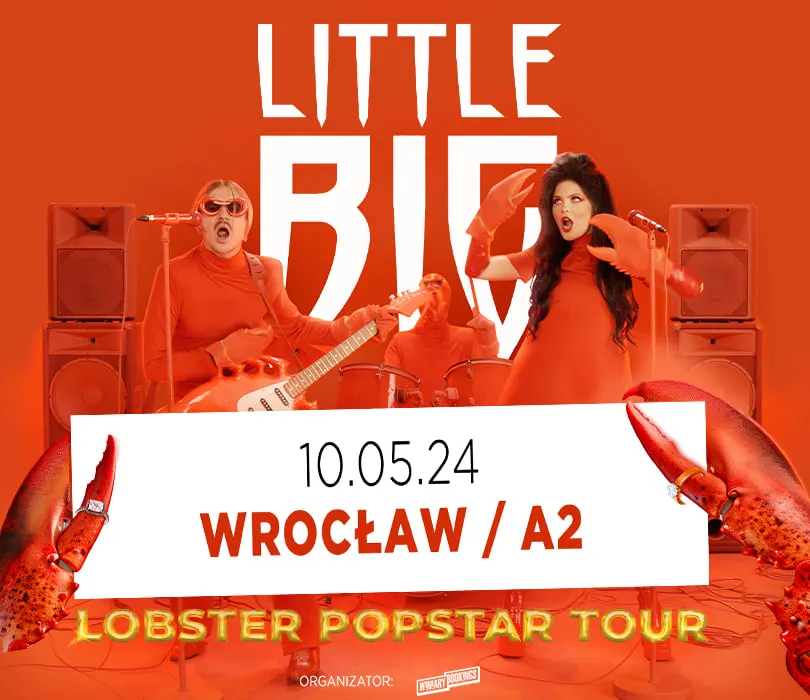 Little Big powracają do Polski, gdzie wystąpią kolejno: 8 maja w gdańskim B90, dzień później w warszawskiej Stodole oraz 10 maja we wrocławskim A2. “Jesteśmy jak parzący koktajl absurdu i czystego szaleństwa” mówił w wywiadzie charyzmatyczny lider Little Big, Ilja “Ilich” Prusikin i trudno się z nim nie zgodzić. Będące połączeniem wściekłych, tanecznych bitów oraz absurdalnych tekstów piosenki grupy od lat podbijają parkiety na całym świecie, a o podobnych, liczonych w setkach milionów streamach i wyświetleniach utworów większość zespołów może tylko pomarzyć. Na swoim koncie mają trasy po Stanach Zjednoczonych i Europie, udział w największych festiwalach na Starym Kontynencie (m.in. Szigiet, Paaspop, Dour, Lowlands, Couvre Feu) oraz w Konkursie Piosenki Eurowizji 2020 z piosenką “Uno”. Pochodzą z Rosji, otwarcie i stanowczo sprzeciwiają się inwazji na Ukrainę i polityce Putina, przez co musieli uciekać ze swojego kraju. Już w maju Little Big powrócą do Polski na 3 koncerty i porwą Was do szalonej zabawy!  LITTLE BIG - LOBSTER POPSTAR TOUR 8.05.2024 Gdańsk, B90 9.05.2024 Warszawa, Stodoła 10.05.2024 Wrocław, A2 19:00 drzwi  20:30 Little Big Meet & greet o 18:00. Wstęp na koncert 13+ za pisemną zgodą rodzica. Poniżej 13 lat, wymagana obecność pełnoprawnego opiekuna. Wzór zgody: https://bit.ly/WiniaryBookings_ZgodaRodzica Regulamin wydarzenia: https://winiarybookings.pl/regulamin/ W trosce o środowisko zachęcamy Was do pokazywania biletów na telefonie zamiast ich drukowania. ➡LITTLE BIG - punk-pop-rave  https://www.facebook.com/littlebigbandofficial https://www.instagram.com/littlebigband https://www.tiktok.com/@littlebig ”IT HAPPENS”: https://www.youtube.com/watch?v=Zr93W_omd4M ”SKIBIDI”: https://www.youtube.com/watch?v=mDFBTdToRmw ”HYPNODANCER”: https://www.youtube.com/watch?v=RhMYBfF7-hE