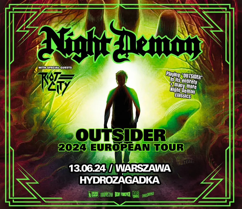 Heavy metal ma się dobrze, a takie zespoły jak Night Demon i Riot City są tego najlepszym przykładem. Oba będziemy mieli okazję zobaczyć na dwóch wspólnych koncertach w Polsce - 12 czerwca w poznańskim klubie Pod Minogą oraz dzień później w warszawskiej Hydrozagadce! Amerykańskie Night Demon już od blisko 15 lat dumnie kroczy pod flagą tradycyjnego heavy metalu. Zadebiutowali świetnie przyjętym “Cursed of the Damned” , kolejny cios zadali wraz z wydaniem “Darkness Remains” z 2017, a w zeszłym roku powrócili z trzecim w swoim katalogu albumem, zatytułowanym “Outsider”. Na nim kalifornijskie trio przesuwa gatunkowe granice mocno zarysowane przez kult NWOBHM i wprowadza do swojego repertuaru powiew świeżości. Jednak największą siłą Night Demon są koncerty - ich formacja gra od groma, a o sile ich występów mogliśmy się przekonać choćby podczas festiwalu Summer Dying Loud w 2022 roku. W czerwcu Amerykanie powrócą do Polski na dwa koncerty, na których towarzyszyć im będzie kanadyjski skład Riot City. Dyskografię formacji zamyka “Electric Elite” z 2022, na którym oprócz klasycznych heavy metalowych wzorców usłyszymy również echa US heavy czy power metalu. Pasja do muzyki, galopujące tempa, gitarowe melodie, solówki i piskliwe wokale - tego wszystkiego doświadczymy z Riot City na scenie! NIGHT DEMON + RIOT CITY 12.06.2024 Poznań, Pod Minogą 13.06.2024 Warszawa, Hydrozagadka Szanowni Państwo. Prosimy o kupowanie biletów wyłącznie w autoryzowanych punktach sprzedaży. Poprzez kupno wejściówek od osób trzecich możecie zostać Państwo oszukani. Wstęp na koncert 13+ za pisemną zgodą rodzica. Poniżej 13 lat, wymagana obecność pełnoprawnego opiekuna. Wzór zgody: https://bit.ly/WiniaryBookings_ZgodaRodzica Regulamin wydarzenia: https://winiarybookings.pl/regulamin/ W trosce o środowisko zachęcamy Was do pokazywania biletów na telefonie zamiast ich drukowania. --------------------------------------- Wpadaj na Instagram➡http://bit.ly/Nasz-instagram Polub nasz profil➡http://bit.ly/Nasz--Facebook