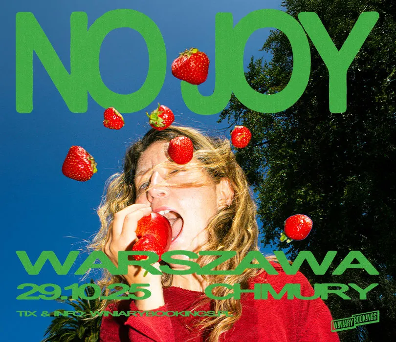 Choć muzykę No Joy najczęściej przypisuje się do shoegaze’u, to brzmienie projektu jest zdecydowanie bardziej złożone. Jasamine White-Gluz porzuca wszelkie kategorie i umiejętnie czerpie z różnych gatunków, co usłyszycie na nowej płycie “Bugland”. Zespół wystąpi 29 października w warszawskich Chmurach. No Joy to projekt kanadyjskiej artystki Jasamine White-Gluz, który od 2009 roku wymyka się prostym klasyfikacjom. Zaczynając od shoegaze’owych pejzaży, artystka na przestrzeni lat poszerzała brzmienie m.in. o elementy metalu, trip-hopu czy elektroniki, tworząc unikalny, a zarazem nieuchwytny muzyczny język. Najnowsza, wydana 8 sierpnia płyta “Bugland” współprodukowana była z eksperymentalną Fire-Toolz i stanowi kolejny krok w stronę odważnych poszukiwań. No Joy występowało na festiwalach takich jak Levitation czy Desert Daze, dzieliło również scenę z DIIV, Nothing czy Preoccupations. Podczas koncertów White-Gluz zanurza się w chaosie, by następnie z pełną swobodą z niego wyjść. NAZWA ZESPOŁU No JoySUPPORT DusznoMIASTO: Chmury, Warszawa DATA 29.1019:00 OTWARCIE DRZWI20:00 Duszno21:00 No JoyWstęp na koncert 13+ za pisemną zgodą rodzica. Poniżej 13 lat, wymagana obecność pełnoprawnego opiekuna.Wzór zgody: https://bit.ly/pisemna_zgoda_rodzica_wb Regulamin wydarzenia: https://bit.ly/regulamin_wydarzenia_wb W trosce o środowisko zachęcamy Was do pokazywania biletów na telefonie zamiast ich drukowania.