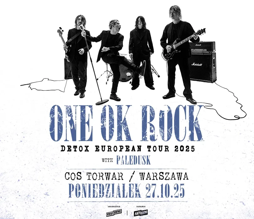 One Ok Rock powracają do Polski! Japońska grupa wystąpi 27 października w hali COS Torwar w Warszawie w ramach trasy promującej najnowszy krążek “Detox”, gdzie towarzyszyć jej będą rodacy z Paledusk!Przez dwie dekady działalności One Ok Rock zbudowali silną nić ze swoimi fanami za sprawą wysoce przebojowej mieszanki emo, alternatywnego rocka i popu. Zadebiutowali w 2007 roku i bardzo szybko zdobyli dużą popularność w swoim kraju, czego efektem były koncerty na japońskich stadionach i w halach, w tym w legendarnej Nippon Budokan. Światową ekspansję rozpoczęli chwilę później podpisując międzynarodowy kontrakt wydawniczy, co otworzyło im drogę do scen w Stanach Zjednoczonych, Azji i Europie oraz na szczyty list przebojów. W 2022 roku wydali album “Luxury Disease”, po którym zagrali duże trasy, m.in. jako support Muse, The Smashing Pumpkins czy Eda Sheerana oraz największą dotychczas po swojej ojczystej Japonii. Zeszły rok upłynął pod kątem kolejnego sukcesu - zespół zagrał 8 koncertów w 7 miastach, na których zgromadził blisko 190 000 fanów. 21 lutego premierę miała nowa płyta One Ok Rock, “Detox”, wyprodukowana przez nagrodzonych i nominowanych do nagrody Grammy Roba Cavallo, Dana Lancastera i Pete’a Nappiego. W ramach jej promocji oraz jubileuszu dwudziestolecia kariery Japończycy powrócą do Polski, gdzie 27 października wystąpią w hali COS Torwar w Warszawie! Przed One Ok Rock na scenie zamelduje się ekipa Paledusk, czyli kolejna siła z Japonii, która z każdym rokiem zyskuje na mocy. Muzyka podopiecznych wytwórni SharpTone jest niczym jazda rollercoasterem - główną rolę gra tu metalcore, ale znajdziemy w niej też wpływy wielu innych, różnych gatunków. Brali udział w organizowanej przez zespół Slipknot japońskiej edycji festiwalu Knotfest, zagrali trasy u boku Bring Me the Horizon i Deftones, a ich koncerty naładują energią każdego. Jeśli szukacie świeżości w nowoczesnym graniu, to sprawdzajcie ich ostatnią płytę “Palehell” i nie spóźnijcie się na ich występ 27 października!ONE OK ROCKSupport: Paledusk27.10.2025 / Warszawa, COS TorwarBILETY: Przedsprzedaż biletów rozpocznie się w piątek, 21 marca o godzinie 10:00.https://bit.ly/ONE_OK_ROCK_WWA Punkty sprzedaży: www.winiarybookings.pl, Going, Empik Bilety. Szanowni Państwo. Prosimy o kupowanie biletów wyłącznie w autoryzowanych punktach sprzedaży. Poprzez kupno wejściówek od osób trzecich możecie zostać Państwo oszukani. Wstęp na koncert 13+ za pisemną zgodą rodzica. Poniżej 13 lat, wymagana obecność pełnoprawnego opiekuna.Wzór zgody: https://bit.ly/WiniaryBookings_ZgodaRodzica Regulamin wydarzenia: https://winiarybookings.pl/regulamin/ W trosce o środowisko zachęcamy Was do pokazywania biletów na telefonie zamiast ich drukowania.ONE OK ROCK (Japonia / Fueled by Ramen) - emo, alternative rock, pop punkhttps://www.facebook.com/ONEOKROCK https://www.instagram.com/oneokrockofficial https://www.tiktok.com/@oneokrock_official ”Tropical Therapy”: https://www.youtube.com/watch?v=3kpSAn2uIq4 ”Clock Strikes”: https://www.youtube.com/watch?v=6YZlFdTIdzM ”Stand Out Fin In”: https://www.youtube.com/watch?v=IGInsosP0Ac PALEDUSK (Japonia / SharpTone) - metalcore https://www.facebook.com/Paledusk https://www.instagram.com/paledusk_jpn/ https://www.paledusk.com/ ”PALEHELL”: https://www.youtube.com/watch?v=0MKwYgItwtI ”AREA PD”: https://www.youtube.com/watch?v=0ipPvRQtjdQ ”BLACK ICE”: https://www.youtube.com/watch?v=_mRFtRXLiyg ---------------------------------------Wpadaj na Instagram➡http://bit.ly/Nasz-instagram Polub nasz profil➡http://bit.ly/Nasz--Facebook