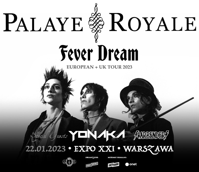 Kanadyjskie fashion-rockowe trio po raz kolejny odwiedzi Polskę! Palaye Royale zapowiadają album „Fever Dream”, który ukaże się już 28 października, a krótko po premierze wyruszą w trasę koncertową promującą nowy krążek. Na początku przyszłego roku zespół wystąpi na dwóch koncertach w Polsce. Odbędą się one 21.01.23 w krakowskim klubie Studio oraz 22.01.23 w warszawskiej hali EXPO XXI. Palaye Royale są na scenie od ponad dziesięciu lat, a ich popularność gwałtownie rośnie. Classic Rock Magazine opisuje ich styl jako połączenie rocka inspirowanego My Chemical Romance, punka w stylu New York Dolls oraz domieszkę bluesa. Występy kanadyjskiej formacji to solidny zastrzyk adrenaliny, a wszystko wskazuje na to, że będzie to najgłośniejsza trasa w ich karierze! Na obydwu koncertach w roli supportu wystąpią energiczni Yonaka - zadziorny rockowy zespół z Brighton.**PALAYE ROYALE**22.01.2023EXPO XXI, Warszawa **Support: YONAKA**18:00 - VIP MEET AND GREET 19:00 - DOORS 19:30 - STARBENDERS 20:15 - YONAKA 21:30 - PALAYE ROYALE ️Szanowni Państwo. Prosimy o kupowanie biletów wyłącznie w autoryzowanych punktach sprzedaży. Poprzez kupno wejściówek od osób trzecich możecie zostać Państwo oszukani.⚠️Wstęp na koncert 13+ za pisemną zgodą rodzica. Poniżej 13 lat, wymagana obecność pełnoprawnego opiekuna. Wzór zgody: https://bit.ly/WiniaryBookings_ZgodaRodzicaRegulamin wydarzenia: https://bit.ly/WB_RegulaminW trosce o środowisko zachęcamy Was do pokazywania biletów na telefonie zamiast ich drukowania.[Palaye Royale](https://goingapp.pl/selekcja/palaye-royale)