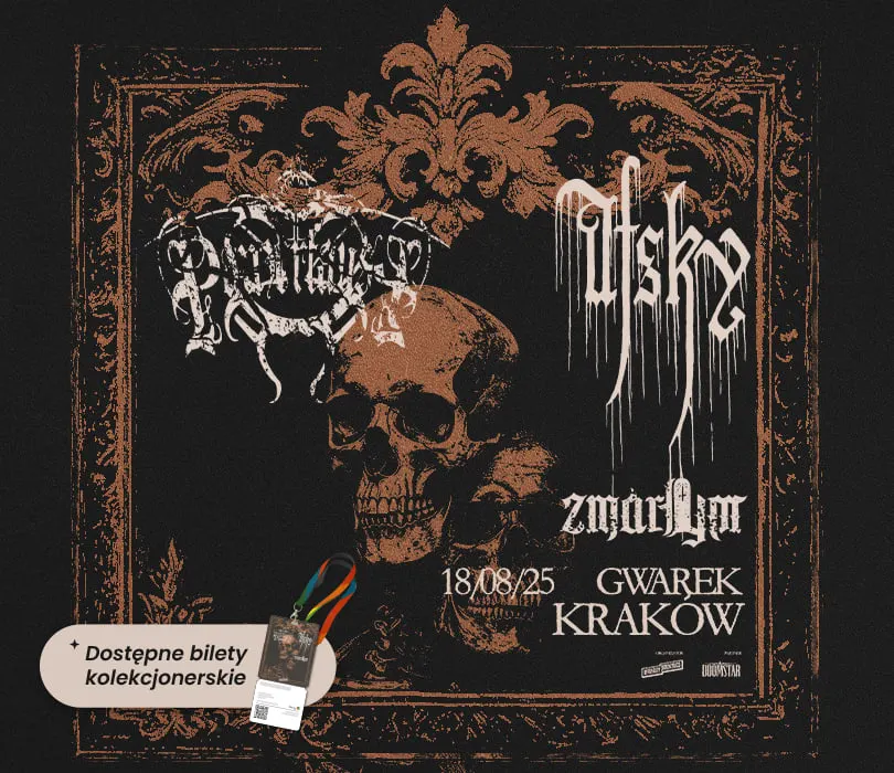 Kanadyjczycy z Panzerfaust oraz duńskie Afsky ponownie na wspólnych koncertach w Polsce! Ten blackmetalowy duet zobaczycie w sierpniu na scenach w Warszawie, Krakowie oraz Poznaniu! We wszystkich 3 miastach towarzyszyć im będzie grupa Zmarłym. Kanadyjczycy z Panzerfaust swoją twórczością wymierzają cios w twarz ludzkości prosto z buta. Ich black metal to połączenie tych najbardziej skrajnych, surowych cech gatunku z jego atmosferyczną odsłoną. W zeszłym roku, nakładem wytwórni Eisenwald, ukazała się ich kolejna płyta z serii “The Suns of Perdition” - “Chapter IV: To Shadow Zion”, która tylko potwierdza ich wysoką formę. Panzerfaust to koncertowy walec, o czym powinniście pamiętać z ich poprzedniej wizyty w naszym kraju, a uzbrojonych w nowy materiał po prostu nie wypada przegapić. Afsky to solowy projekt Ole Luka, który muzyk powołał do życia w połowie drugiej dekady XXI wieku w Kopenhadze. Łącząc ze sobą klasyczny black metal z inspiracjami wychodzącymi z duńskiej muzyki schlager, muzyki klasycznej i popu Luk tworzy niezwykle charakterystyczną atmosferę, która stała się znakiem firmowym zespołu. Dorzucając do tego jeszcze elementy depressive black metalu oraz folku Afsky jest jednym z czołowych reprezentantów gatunku w ostatnich latach, co tylko udowodnił na ostatniej jak dotąd płycie “Om hundrede år” oraz występując na największych europejskich festiwalach.Grają Zmarłym od 2018 roku. W 2020 własnym sumptem wydali EP "Ziemie Jałowe" a już rok później nakładem Godz ov War Productions ukazał się ich debiutancki album "Druga Fala". Wiosną 2025 natomiast premierę miała ich najnowszy album „Wielkie Zanikanie”, wydany ponownie nakładem Godz Ov War Productions. Niektórzy mówią, że Zmarłym w swojej twórczości łączą gatunki takie jak black metal, cold wave, post punk, hard rock, czy egipskie disco, inni że to po prostu hipsterskie gówno z kolejną głupią polską nazwą. Czy prawdziwsze jest pierwsze czy drugie stwierdzenie? Czy to już? Czy muchy wychodzą im z ust? Żeby spróbować odpowiedzieć na powyższe pytania najlepiej zobaczyć ich na żywo...PANZERFAUST + AFSKY Support: Zmarłym17.08.2025 / Warszawa, VooDoo18.08.2025 / Kraków, Gwarek19.08.2025 / Poznań, Pod Minogą Punkty sprzedaży: www.winiarybookings.pl , Going, Empik Bilety. Szanowni Państwo. Prosimy o kupowanie biletów wyłącznie w autoryzowanych punktach sprzedaży. Poprzez kupno wejściówek od osób trzecich możecie zostać Państwo oszukani. Wstęp na koncert 13+ za pisemną zgodą rodzica. Poniżej 13 lat, wymagana obecność pełnoprawnego opiekuna.Wzór zgody: https://bit.ly/WiniaryBookings_ZgodaRodzica Regulamin wydarzenia: https://winiarybookings.pl/regulamin/ W trosce o środowisko zachęcamy Was do pokazywania biletów na telefonie zamiast ich drukowania.