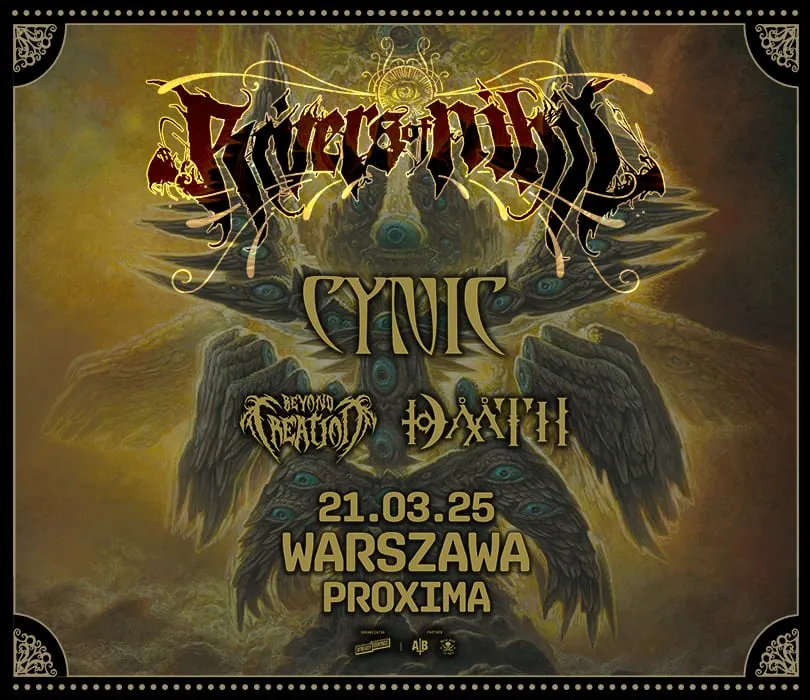 Święto progresywnego death metalu! 21 marca obfitował będzie w połamane, acz brutalne kompozycje, za co odpowiedzialny będzie zabójczy pakiet Rivers of Nihil, Beyond Creation, Cynic oraz Dååth. Koncert odbędzie się w warszawskim klubie Proxima.  Od początku działalności Rivers Of Nihil w swojej twórczości uciekają od gatunkowych szufladek, jednak jej ważnym elementem bez wątpienia jest progresywna, techniczno-deathmetalowa aura. Wraz z wydaniem trzeciego w swoim dorobku albumu “Where Owls Know My Name” Amerykanie wjechali na metalowe salony i z każdym kolejnym krążkiem pokazują, że nie stronią od nieoczywistych inspiracji. Dowód? Single “The Sub-Orbital Blues” (2023) i “Criminals” (2024), które znajdą się na nowym materiale, zapowiadanym na przyszły rok.  Choć Beyond Creation często plasowani są na skraju progresywnego oraz technicznego metalu, to śmiało można powiedzieć, że na tle reszty reprezentantów gatunku ekipa z Montrealu wyróżnia się przede wszystkim przystępnością formy. Pomimo imponującego warsztatu ich kompozycje są przede wszystkim nafaszerowane świetnymi melodiami, o czym możecie się przekonać słuchając ich ostatniej jak dotąd płyty “Algorythm” z 2018 roku.  Założony pod koniec lat 80. w Miami Cynic od samego początku trzyma się progresywnego kierunku. Już za sprawą swojego mistrzowskiego debiutu “Focus” z 1993 zespół wspiął się na wyżyny progresywnego death metalu, ale czy mogło być inaczej, skoro jego założyciele, Paul Masvidal oraz Sean Reinert, maczali palce przy nagrywkach “Human” legendarnego Death? Rok po jego wydaniu formacja rozpadła się, by powrócić w 2006 roku, a na następnych swoich płytach - “Traced in Air” (2008), “Kindly Bent To Free Us (2014) oraz ostatnim jak dotąd “Ascension Codes” z 2021, położyła większy nacisk na dopieszczone, wirtuozerskie melodie.  Amerykański Dååth odrodził się po 13 latach przerwy i powrócił z krążkiem “The Deceivers”, który ukazał się pod egidą wytwórni Metal Blade. W szeregach dowodzonej przez Eyala Leviego grupy w zeszłym roku pojawili się Krimh, David Marvuglio, Jesse Zuretti oraz Rafael Trujillo, a na nowym materiale usłyszymy gościnne występy m.in. Jeffa Loomisa z Arch Enemy i Nevermore, Marka Holcomba z Periphery, Deana Lamba z Archspire czy Pera Nilssona ze Scar Symmetry oraz Meshuggah.  THE AGGRESSIVE PROGRESSIVE EU/UK TOUR 2025 RIVERS OF NIHIL  +CYNIC, BEYOND CREATION, DAATH  21.03.2025 / Warszawa, Proxima  drzwi: 18:00 / start 18:45 BILETY: Przedsprzedaż biletów rozpocznie się w piątek, 25 października o godzinie 11:00. https://bit.ly/RIVERS_OF_NIHIL_WWA  Punkty sprzedaży: www.winiarybookings.pl, Going, Empik Bilety  Szanowni Państwo. Prosimy o kupowanie biletów wyłącznie w autoryzowanych punktach sprzedaży. Poprzez kupno wejściówek od osób trzecich możecie zostać Państwo oszukani.   Wstęp na koncert 13+ za pisemną zgodą rodzica. Poniżej 13 lat, wymagana obecność pełnoprawnego opiekuna. Wzór zgody: https://bit.ly/WiniaryBookings_ZgodaRodzica  Regulamin wydarzenia: https://winiarybookings.pl/regulamin/  W trosce o środowisko zachęcamy Was do pokazywania biletów na telefonie zamiast ich drukowania. RIVERS OF NIHIL (USA / Metal Blade Records) - progressive/technical death metal  https://www.facebook.com/riversofnihil https://www.instagram.com/riversofnihil/ ”Criminals”: https://www.youtube.com/watch?v=HBzqrBJp4t4 ”Where Owls Know My Name”: https://www.youtube.com/watch?v=LBAXZto7uVc BEYOND CREATION (Kanada / Season of Mist) - progressive/technical death metal https://www.facebook.com/BeyondCreationOfficial https://www.instagram.com/beyondcreationofficial/ ”Earthborn Evolution”: https://www.youtube.com/watch?v=ovzRpdxRj0Q ”The Inversion”: https://www.youtube.com/watch?v=5rxhGnTJZsc CYNIC (USA / Season of Mist) - progressive metal/rock https://www.facebook.com/Cynicofficialpage https://www.instagram.com/cynic_official/ ”Diamond Light Body”: https://www.youtube.com/watch?v=whZETH6W948 ”Integral Birth”: https://www.youtube.com/watch?v=Uc6f_9vmS24 DAATH (USA / Metal Blade Records) - industrial / melodic death / groove metal https://www.facebook.com/Daath https://www.instagram.com/daathofficial/ ”Ascension”: https://www.youtube.com/watch?v=TBsoAuOLx0w ”Hex Unending”: https://www.youtube.com/watch?v=_GGuwRfeRa0 --------------------------------------- Wpadaj na Instagram➡http://bit.ly/Nasz-instagram Polub nasz profil➡http://bit.ly/Nasz--Facebook