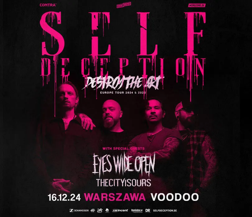 🤘 Już 16 grudnia w warszawskim klubie VooDoo wystąpi grupa, która jest jedną z wiodących sił skandynawskiej sceny rockowej. Szwedzi z Self Deception zagrają w Polsce w ramach trasy Destroy The Art Tour, a towarzyszyć im będą rodacy z Eyes Wide Open oraz metalcore’owcy z TheCityIsOurs. Self Deception to jeden z najciekawszych i najczęściej streamowanych rockowych zespołów ze Szwecji. Formacja znana jest z dynamicznego brzmienia, które łączy klasyczne elementy rocka ze świeżym, nowoczesnym metalem. Grupa ma na koncie dwa albumy studyjne i single na szczytach list przebojów, a najnowszy krążek Szwedów, „Destroy The Art” ukaże się już 25 października i jak anonsuje sam zespół, będzie to wyzwanie rzucone wszelkim normom. Płyta głęboko zanurza się w introspektywnych tematach, łącząc charakterystyczne brzmienie i przebojowe refreny z dojrzałymi, przemyślanymi tekstami, odnoszącymi się do osobistych i społecznych wyzwań. Eyes Wide Open niosą pochodnię szwedzkiej sceny melodyjnego death metalu, wzbogacając swoją twórczość nowoczesnymi brzmieniami i nowymi wpływami inspirowanymi metalcorem. Chwytliwe melodie, ciężkie bębny, pompujący rytm i wszechstronny wokal łączą się w charakterystyczny styl, który ekscytuje fanów na całym świecie. Teksty poruszają tematy wewnętrznych i zewnętrznych konfliktów, takich jak poszukiwanie osobistych marzeń i konfrontacja ze strachami i demonami. Londyński TheCityIsOurs istnieje od 2015 roku i z pełną premedytacją robi coraz więcej zamieszania na scenie alternatywnego rocka i metalu. Intensywne trasy koncertowe zbiegły się z sukcesem ich debiutanckiego krążka „Low” (2019), który znalazł się w pierwszej piątce metalowych list przebojów ITunes. Z roku na rok z coraz większą ilością koncertów i kolejnymi nowymi wydawnictwami formacja zdobywała coraz większe uznanie krytyków i sukcesywnie podbijała serca fanów melodic metalcore’a. SELF DECEPTION DESTROY THE ART TOUR SPECIAL GUESTS: EYES WIDE OPEN, THECITYISOURS 📅16.12.2024 📍Warszawa, VooDoo 🎟BILETY: W sprzedaży od czwartku, 29 sierpnia, godz. 15:00: https://bit.ly/SELF_DECEPTION_WAW 🎫Punkty sprzedaży: www.winiarybookings.pl, Going, Empik Bilety ⚠️Szanowni Państwo. Prosimy o kupowanie biletów wyłącznie w autoryzowanych punktach sprzedaży. Poprzez kupno wejściówek od osób trzecich możecie zostać Państwo oszukani.⚠️ ❌Wstęp na koncert 13+ za pisemną zgodą rodzica. Poniżej 13 lat, wymagana obecność pełnoprawnego opiekuna. Wzór zgody: https://bit.ly/pisemna_zgoda_rodzica 📄Regulamin wydarzenia: https://winiarybookings.pl/regulamin/ 🌿W trosce o środowisko zachęcamy Was do pokazywania biletów na telefonie zamiast ich drukowania. ➡SELF DECEPTION (Szwecja, Ditto Music) – modern rock 🌐 https://www.facebook.com/selfdeceptionsthlm 🌐 www.selfdeception.se 🌐 https://www.instagram.com/selfdeception_official/ 🔊 „Fight Fire With Gasoline”: https://www.youtube.com/watch?v=cGU9WXVV0JQ 🔊 „Psycho”: https://www.youtube.com/watch?v=Bn_qCmjH3io 🔊 „Beautiful Disaster”: https://www.youtube.com/watch?v=4qKVakv_9k8 ➡EYES WIDE OPEN (Szwecja/ Arising Empire) – modern metal 🌐 https://www.facebook.com/Eyes.Wide.Open.SWE 🌐 www.e-w-o.net 🔊 „End of Days”: https://www.youtube.com/watch?v=bP01dkvsMJE 🔊 „Black Clover”: https://www.youtube.com/watch?v=RO6PUqVWp5I 🔊 „Die Another Day”: https://www.youtube.com/watch?v=iWxkIrH8Wiw ➡THECITYISOURS (Wielka Brytania/ Arising Empire) – melodic metalcore 🌐 https://www.facebook.com/TheCityIsOursUK 🌐 www.thecityisours.co.uk 🌐 https://www.instagram.com/thecityisoursuk/ 🔊 „In The Dark”: https://www.youtube.com/watch?v=-5Nxm4uJOqo 🔊 „Body Count” https://www.youtube.com/watch?v=IxLDTX6ChS8 🔊 „Shame” https://www.youtube.com/watch?v=YL3N_-5QzSQ --------------------------------------- Wpadaj na Instagram ➡ http://bit.ly/Nasz-instagram Polub nasz profil ➡ http://bit.ly/Nasz--Facebook