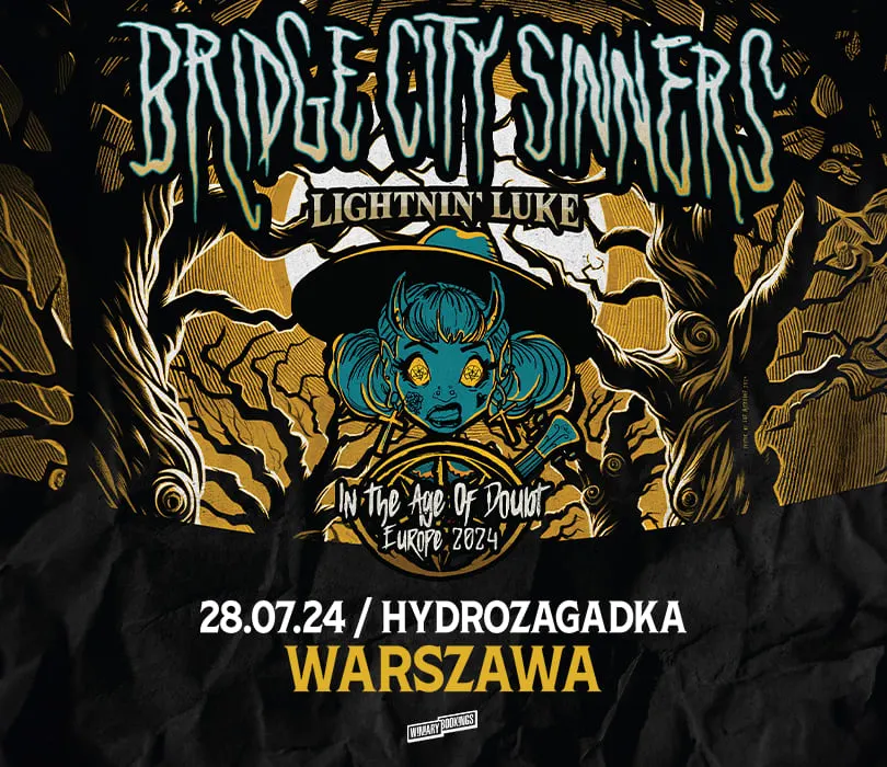 The Bridge City Sinners odwiedzą nasz kraj po raz pierwszy już 28 lipca i w warszawskiej Hydrozagadce zaserwują nam swoje dark folkowe przeboje! The Bridge City Sinners to jeden z zespołów, który na scenie folkowej jest powiewem świeżego powietrza. Choć w ich muzyce wyraźnie słychać nawiązania do jazzu z czasów prohibicji w Stanach czy appalaskiego folku, grupa kroczy własną, opartą na punk rockowych korzeniach, ścieżką. Zaczynali od grania na ulicach amerykańskich miast, teraz coraz częściej dostają zaproszenia na duże festiwale. Nie ma w tym nic dziwnego, bo kawałki kwintetu są skoczne, energiczne i bardzo melodyjne, a mroczny storytelling charyzmatycznej wokalistki Libby Lux nadaje jego twórczości unikalny wymiar. 12 lipca, nakładem swojej własnej wytwórni Flail, Amerykanie wydadzą nowy album “In the Age of Doubt”, a nieco ponad dwa tygodnie później przyjadą z nim do Warszawy, gdzie wystąpią po raz pierwszy w naszym kraju!   THE BRIDGE CITY SINNERS 28.07.2024 Warszawa, Hydrozagadka  Szanowni Państwo. Prosimy o kupowanie biletów wyłącznie w autoryzowanych punktach sprzedaży. Poprzez kupno wejściówek od osób trzecich możecie zostać Państwo oszukani. Wstęp na koncert 13+ za pisemną zgodą rodzica. Poniżej 13 lat, wymagana obecność pełnoprawnego opiekuna. Wzór zgody: https://bit.ly/pisemna_zgoda_rodzica Regulamin wydarzenia: https://winiarybookings.pl/regulamin/ W trosce o środowisko zachęcamy Was do pokazywania biletów na telefonie zamiast ich drukowania. ➡THE BRIDGE CITY SINNERS (USA / Flail Records) - alternative dark folk, americana https://www.facebook.com/bridgecitysinners https://www.instagram.com/bridgecitysinners ”Doubt”: https://www.youtube.com/watch?v=3cu1dDFjH0M ”Devil Like You”: https://www.youtube.com/watch?v=ZDgp1Z3EPVU ”Song of the Siren” live session: https://www.youtube.com/watch?v=ldbA86MZIJ0 --------------------------------------- Wpadaj na Instagram ➡ http://bit.ly/Nasz-instagram Polub nasz profil ➡ http://bit.ly/Nasz--Facebook