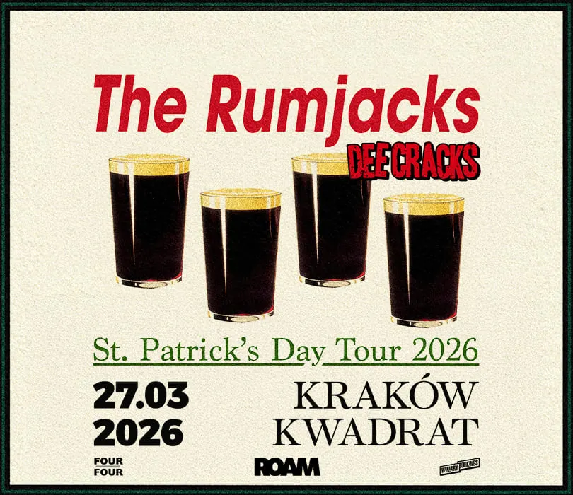 The Rumjacks przywiozą St. Patrick’s Day prosto do Polski, zamieniając Poznań, Kraków i Warszawę w jedną wielką potańcówkę🍀 Ich naładowany pubową energią celtycki punk wybrzmi 26 marca w klubie 2Progi, dzień później w Kwadracie i 29 marca w klubie Oczki, a na każdym z koncertów towarzyszyć im będzie austriacka grupa DeeCracks.
