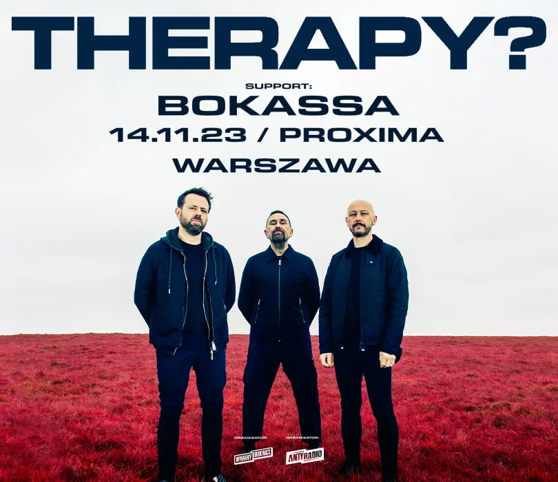 Kultowa formacja z Irlandii Północnej - Therapy? wystąpi 14 listopada na jedynym koncercie w Polsce, który odbędzie się w warszawskim klubie Proxima! W roli supportu zobaczymy norweską grupę Bokassa. Założone w 1989 roku Therapy? już od ponad 3 dekad wytycza swoją własną ścieżkę - zaczynając od noise rockowych mini albumów “Babyteeth” oraz “Pleasure Death”, przez chyba najbliżej definiujące kierunek muzyczny tria, wydane w połowie lat 90. “Troublegum” oraz “ Infernal Love”, na kultowym statusie w nowym tysiącleciu kończąc. Budowany na różnorodnych wzorcach i niepohamowanej żądzy posuwania się do przodu zespół szybko zyskał reputację niesamowicie zaangażowanego, czym skupił swoją uwagę wytwórni A&M w 1992 roku, a w czasie współpracy z jednym z majorsów wiele singli Therapy?, w tym m.in. “Teethgrinder”, “Screamager”, “Nowhere” czy “Stories”, znalazło się w notowaniu UK Top 40. W ramach współpracy z brytyjskim dziennikarzem muzycznym Simonem Youngiem w 2020 ukazała się biografia zespołu “So Much For The 30 Year Plan”, a już w maju światło dzienne ujrzy najnowszy, już 16 w dorobku album grupy - “Hard Cold Fire” Jako support na koncercie zobaczymy norweski zespół Bokassa, który łączy stoner rock/metal z przebojowym punkiem, którą to mieszankę członkowie opisują jako “stoner punk”. Formacja występowała na największych festiwalach w Europie (Wacken, Download, Hellfest), supportowała takie nazwy jak Mastodon, Judas Priest oraz Metallikę na jej stadionowej trasie po Europie i Wielkiej Brytanii. W 2021 roku Norwegowie wydali swój trzeci album “Molotov Rocktail”, który zawędrował na 18. pozycję najlepiej sprzedających się albumów w ich kraju. Skoro sam Lars Ulrich opisał ich jako “insanely fucking cool”, to wiecie, że do Proximy nie należy się spóźnić THERAPY? Support: Bokassa 14.11.2023 Warszawa, Proxima BILETY: Punkty sprzedaży: www.winiarybookings.pl, Going, Biletomat.pl, Empik Bilety, Ebilet, Eventim, Ticketmaster Szanowni Państwo. Prosimy o kupowanie biletów wyłącznie w autoryzowanych punktach sprzedaży. Poprzez kupno wejściówek od osób trzecich możecie zostać Państwo oszukani. Wstęp na koncert 13+ za pisemną zgodą rodzica. Poniżej 13 lat, wymagana obecność pełnoprawnego opiekuna. Wzór zgody: https://bit.ly/WiniaryBookings_ZgodaRodzica Regulamin wydarzenia: https://winiarybookings.pl/regulamin/ W trosce o środowisko zachęcamy Was do pokazywania biletów na telefonie zamiast ich drukowania. - THERAPY? (Irlandia Północna) - alternative rock/metal https://www.facebook.com/Therapyofficial https://www.instagram.com/therapyofficial ”Nowhere”: https://www.youtube.com/watch?v=5z5HJRC9F_0 ”Screamager”: https://www.youtube.com/watch?v=-zZ44S3ZIJM ”Joy”: https://www.youtube.com/watch?v=TbQHEKSv2MM - BOKASSA (Norwegia) - stonerpunk https://www.facebook.com/BokassaBand https://www.instagram.com/bokassaband ”Burn It All (P.T.S.D.E.A.D)”: https://www.youtube.com/watch?v=2_Sbg49K-38 ”Hereticules”: https://www.youtube.com/watch?v=w-zXEqWso0w ”Captain Cold One”: https://www.youtube.com/watch?v=LrQ-xtZOzR4 Wpadaj na Instagram-http://bit.ly/Nasz-instagram Polub nasz profil-http://bit.ly/Nasz--Facebook