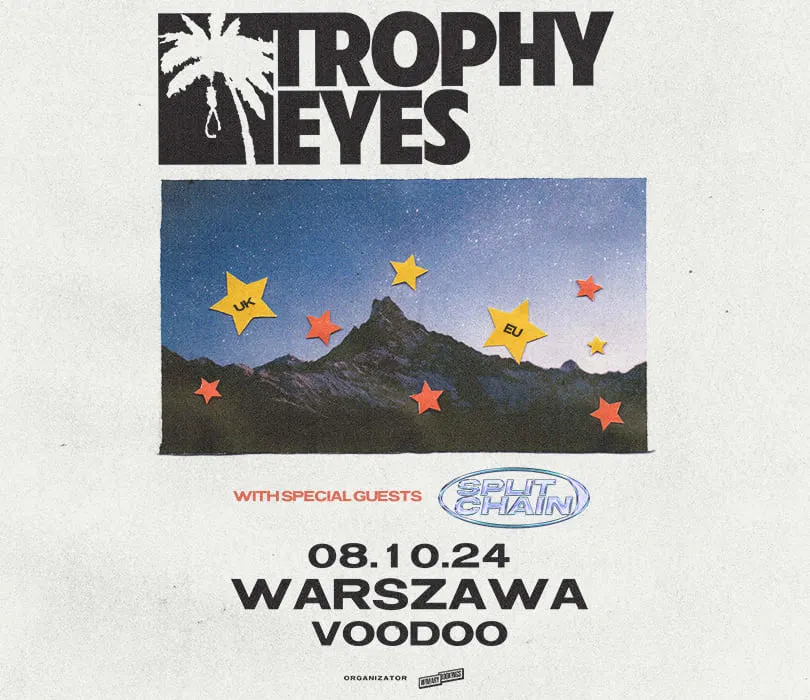 Trophy Eyes, punkrockowy zespół z Australii przyjeżdża do Polski na jeden koncert! Widzimy się 8 października w warszawskim klubie VooDoo, gdzie z pewnością usłyszymy materiał z ich ostatniej płyty Suicide and Sunshine . Gościem specjalnym wieczoru będą Brytyjczycy z alternatywnego zespołu Split Chain. Trophy Eyes wyznacza kierunki w muzyce rockowej, łącząc swoje punkowe i hardcore'owe korzenie z wrażliwością na nowoczesny rock i pop. Pochodząca z Australii 4 osobowa grupa jest znana ze swojej brutalnej szczerości w tekstach i bardzo lirycznym, emocjonalnym sposobie opowiadania historii. Artyści łączą to z niesamowicie energetycznymi występami na żywo, co pozwala im wyprzedawać koncerty na całym świecie. Grupa w ubiegłym roku wydała swój najnowszy album Suicide and Sunshine . Nie brakuje tu trudnych emocji. Płyta jest odą do życia i śmierci, napisaną głównie przez wokalistę zespołu Johna Floreaniego po samobójczej śmierci jego najlepszego przyjaciela. Suicide and Sunshine opowiada o moim życiu, jakkolwiek mikroskopijne i nieistotne jest, o jego dobrych i złych stronach - podsumowuje album John. Gościem specjalnym wieczoru będzie Split Chain. Aktualnie są na ustach wielu fanów alternative, grunge czy nu-metalu, zarówno w swojej rodzinnej Wielkiej Brytanii jak i na całym świecie. Wydali własnym sumptem 7 singli, bezkompromisowo realizując swoją muzyczną wizję. To zespół, który na pewno warto śledzić - nie przegapcie tego supportu! TROPHY EYES Support: Split Chain 8.10.2024 Warszawa, VooDoo BILETY: Przedsprzedaż biletów rozpocznie się w piątek, 19 lipca o godzinie 10:00. https://bit.ly/TROPHY_EYES_WWA_24 Punkty sprzedaży: www.winiarybookings.pl, Going, Empik Bilety Szanowni Państwo. Prosimy o kupowanie biletów wyłącznie w autoryzowanych punktach sprzedaży. Poprzez kupno wejściówek od osób trzecich możecie zostać Państwo oszukani. Wstęp na koncert 13+ za pisemną zgodą rodzica. Poniżej 13 lat, wymagana obecność pełnoprawnego opiekuna. Wzór zgody: https://bit.ly/pisemna_zgoda_rodzica Regulamin wydarzenia: https://winiarybookings.pl/regulamin/ W trosce o środowisko zachęcamy Was do pokazywania biletów na telefonie zamiast ich drukowania. ➡ TROPHY EYES (Australia / Hopeless Records) - punk rock, melodic hardcore, pop punk https://www.facebook.com/trophyeyesmusic/ https://www.instagram.com/trophyeyesmusic/ People Like You https://www.youtube.com/watch?v=EPd6xfwQp8s OMW https://www.youtube.com/watch?v=fo3u1Mtgr4A Enmore https://www.youtube.com/watch?v=qBpgJuFQGAo SPLIT CHAIN (Wielka Brytania) - alternative, grunge, nu-metal https://www.facebook.com/splitchainband/ https://www.instagram.com/splitchainband/ Haven https://www.youtube.com/watch?v=WXPnUN_QeYY Descend https://www.youtube.com/watch?v=PtR4ph8qeV8 Fade https://www.youtube.com/watch?v=JlwRFmdu4SE --------------------------------------- Wpadaj na Instagram http://bit.ly/Nasz-instagram Polub nasz profil http://bit.ly/Nasz--Facebook