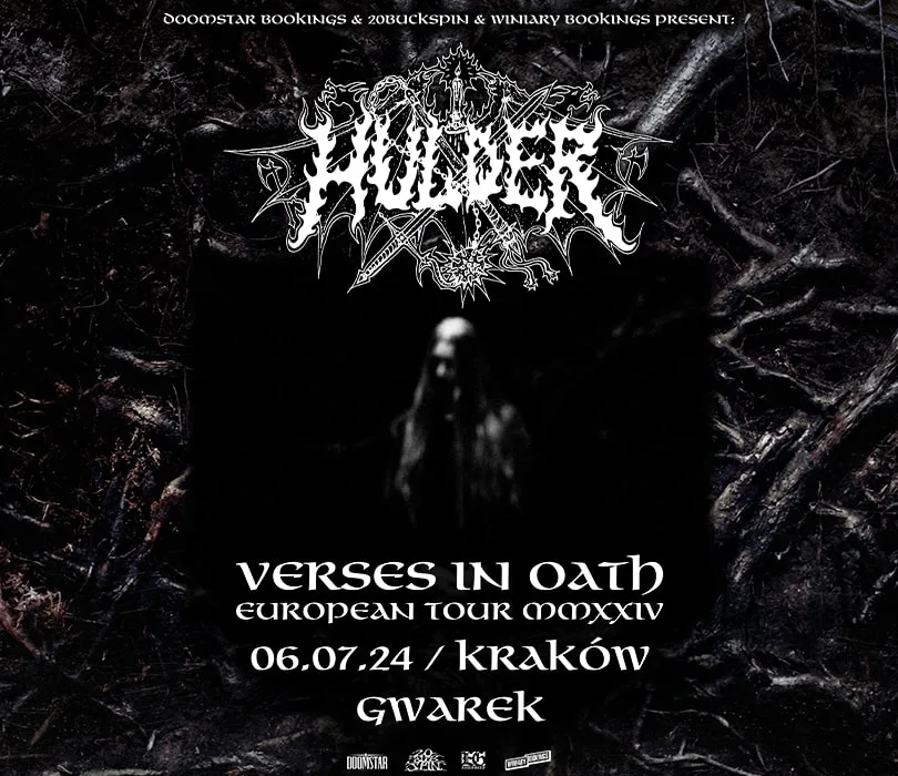 W czasach kiedy black metal rozgałęzia się na wiele podgatunków, Hulder dumnie kroczy jego tradycyjną ścieżką. Świadczy o tym najnowszy album projektu, “Verses In Oath”, a jeszcze dobitniej będziecie mogli się o tym przekonać w lipcu na 3 koncertach, kiedy to Dark Medieval Black Metal rozniesie się po klubach w Poznaniu, Krakowie i Warszawie. Ciężko nie mówić o Hulder jako o sensacji na scenie black metalowej. Marliese Beeuwsaert aka Hulder powołała do życia projekt w 2018 i od tego momentu nie próżnuje - demówki, EPki i single mnożyły się na jej koncie, aż w końcu w 2021 zadebiutowała dużym albumem “Godslastering: Hymns Of A Forlorn Peasantry”. Rok później artystka nawiązała współpracę z wytwórnią 20 Buck Spin, pod egidą której ukazał się minialbum “The Eternal Fanfare”. Materiał odbił się szerokim echem w mediach muzycznych, co zaowocowało m.in. okładką w Decibel Magazine oraz trasami w Ameryce Północnej i Europie. Właśnie ukazał się jej drugi w dorobku krążek “Verses In Oath”, który pokazuje, że wizja artystyczna projektu skupiona jest na hołdowaniu tradycjom drugiej fali black metalu. Za pomocą tej wypełnionej złem i starodawną melancholią muzyki Hulder już latem będzie podbijać europejskie miasta, a w Polsce będą to Poznań, Kraków i Warszawa. VERSES IN OATH ALBUM RELEASE EUROPEAN TOUR 2024 5.07.2024 Poznań, Klub Pod Minogą 6.07.2024 Kraków, Gwarek 7.07.2024 Warszawa, Hydrozagadka Szanowni Państwo. Prosimy o kupowanie biletów wyłącznie w autoryzowanych punktach sprzedaży. Poprzez kupno wejściówek od osób trzecich możecie zostać Państwo oszukani. Wstęp na koncert 13+ za pisemną zgodą rodzica. Poniżej 13 lat, wymagana obecność pełnoprawnego opiekuna. Wzór zgody: https://bit.ly/pisemna_zgoda_rodzica Regulamin wydarzenia: https://winiarybookings.pl/regulamin/ W trosce o środowisko zachęcamy Was do pokazywania biletów na telefonie zamiast ich drukowania. ➡HULDER (USA / 20Buck Spin) - black metal https://www.facebook.com/HulderUS https://www.instagram.com/hulder_official ”Vessel of Suffering”: https://youtu.be/5tE1ptoX1Wo?si=Arq4wBUMCtcpHbKW ”Hearken the End”: https://www.youtube.com/watch?v=bajKrXRTQCo ”Upon Frigid Winds”: https://www.youtube.com/watch?v=fieNkWmbJz0 --------------------------------------- Wpadaj na Instagram ➡ http://bit.ly/Nasz-instagram Polub nasz profil ➡ http://bit.ly/Nasz--Facebook