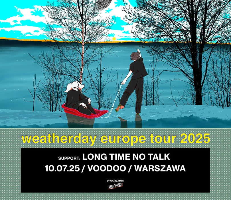 Noisepopowy Weatherday na koncercie w Polsce! Szwedzki projekt wystąpi 10 lipca w warszawskim klubie VooDoo. Jako support zagrają mieszający midwest emo z pop punkiem Long Time No Talk. Kryjąca się za projektem Weatherday osoba artystyczna Sputnik zadebiutowała w 2019 roku albumem “Come In”. 3 lata później, w kolaboracji z Asian Glow, ukazał się ich krążek “Weatherglow”. Na 19 marca zaplanowany jest następca debiutu, “Hornet Disaster”, który ukaże się pod skrzydłami wytwórni Topshelf. 19 nowych kompozycji obfituje w chwytliwe melodie, niespodziewane zwroty, ale przede wszystkim słychać w nich progres na płaszczyźnie kompozytorskiej i produkcyjnej. Jeśli zastanawiacie się jak brzmi połączenie noise popu, emo oraz folkowych dźwięków, to sprawdźcie “Hornet Disaster” i 10 lipca meldujcie się w stołecznym klubie VooDoo!Long Time No Talk debiutowali serią singli, a w 2023 roku wydali pierwszą EPkę. Swoją mieszanką midwest emo i pop punku porwą każdego, kto na nich trafi, a przedsmak tego możecie poczuć sprawdzając ich jeszcze świeży materiał “How to Satisfy Everyone but Yourself”. Rok temu zagrali w Proximie przed Dead Poet Society, ostatnio pojechali na wspólną trasę z Meatballs, więc na koncercie z Weatherday powinni być w gazie. Nie przegapcie ich występu!WEATHERDAYSupport: Long Time No Talk10.07.2025 / Warszawa, VooDoo Punkty sprzedaży: www.winiarybookings.pl , Going, Empik Bilety. Szanowni Państwo. Prosimy o kupowanie biletów wyłącznie w autoryzowanych punktach sprzedaży. Poprzez kupno wejściówek od osób trzecich możecie zostać Państwo oszukani. Wstęp na koncert 13+ za pisemną zgodą rodzica. Poniżej 13 lat, wymagana obecność pełnoprawnego opiekuna.Wzór zgody: https://bit.ly/WiniaryBookings_ZgodaRodzica Regulamin wydarzenia: https://winiarybookings.pl/regulamin/ W trosce o środowisko zachęcamy Was do pokazywania biletów na telefonie zamiast ich drukowania.